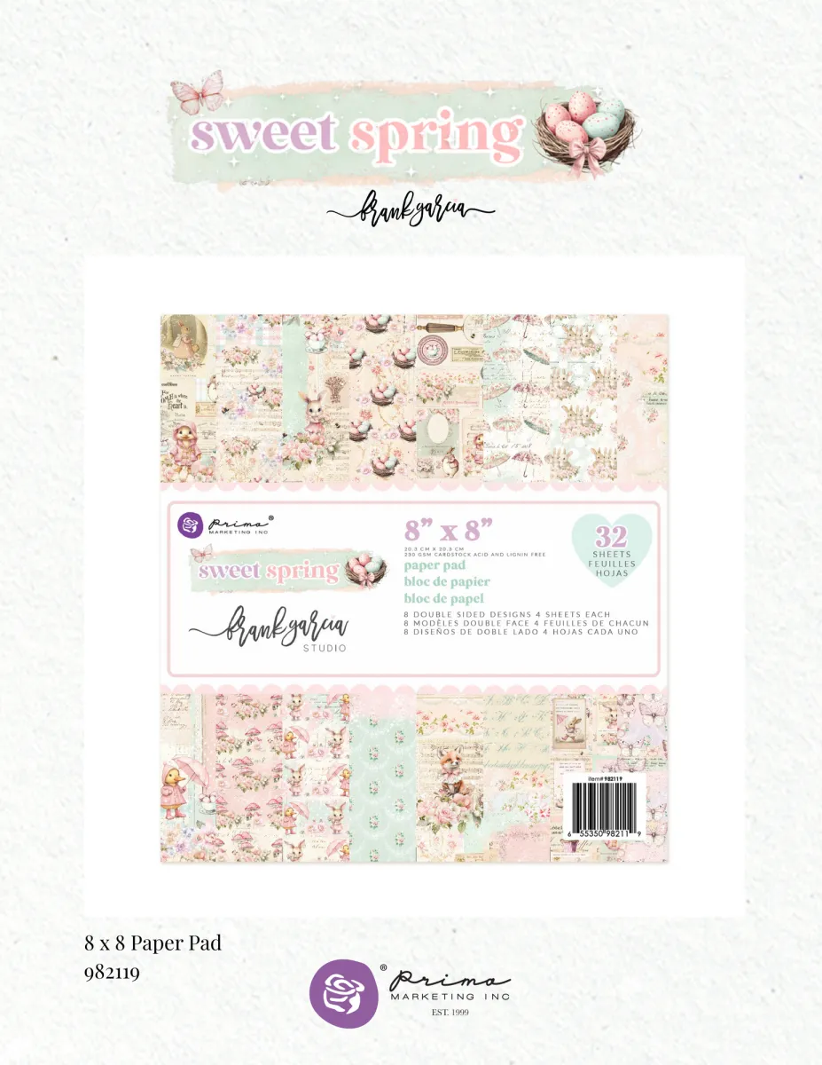 Entdecke Sweet Spring von Frank Garcia mit sanftem Mint, zartem Rosa, Creme und einem Hauch von Lavendel – jedes Design fühlt sich an wie eine Seite aus einem traumhaften Märchengarten. Süße Hasen, kleine Küken, Schmetterlingsakzente, hübsche Regenschirme, zarte Rosen und vintage-inspirierte Hintergründe, die sich perfekt zum Schichten eignen.