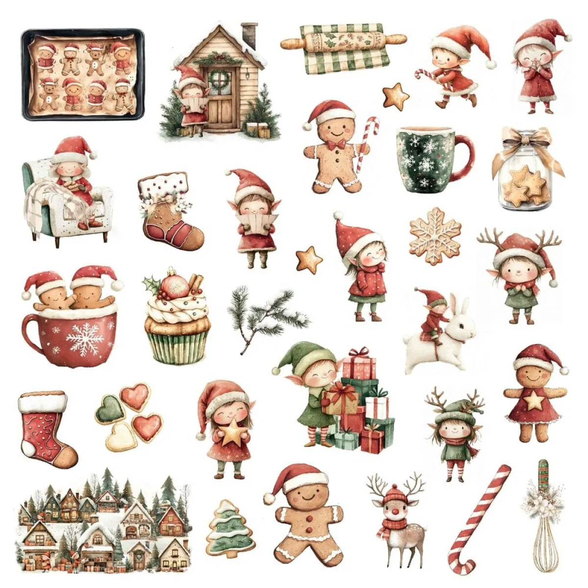 Dieses 64-teilige Ephemera-Set strotzt vor weihnachtlicher Süße: Elfen, Lebkuchen, Zuckerstangen, Strümpfe, Kakaotassen, Rentiere, glasierte Cupcakes und verschneite Dorfhäuser. Jedes Teil ist dafür entworfen, deine Weihnachtsprojekte zu schichten, einzutucken und zu verzieren – eine zauberhafte Mischung aus Backfreude, Winterwunder und festlichem Charme. Perfekt für Karten, Tags, Alben, Dezember-Journale und all deine Weihnachtsprojekte. Dieses Set ist eine märchenhafte Sammlung gemütlicher Details, die deine Weihnachtskreationen zum Leben erwecken.