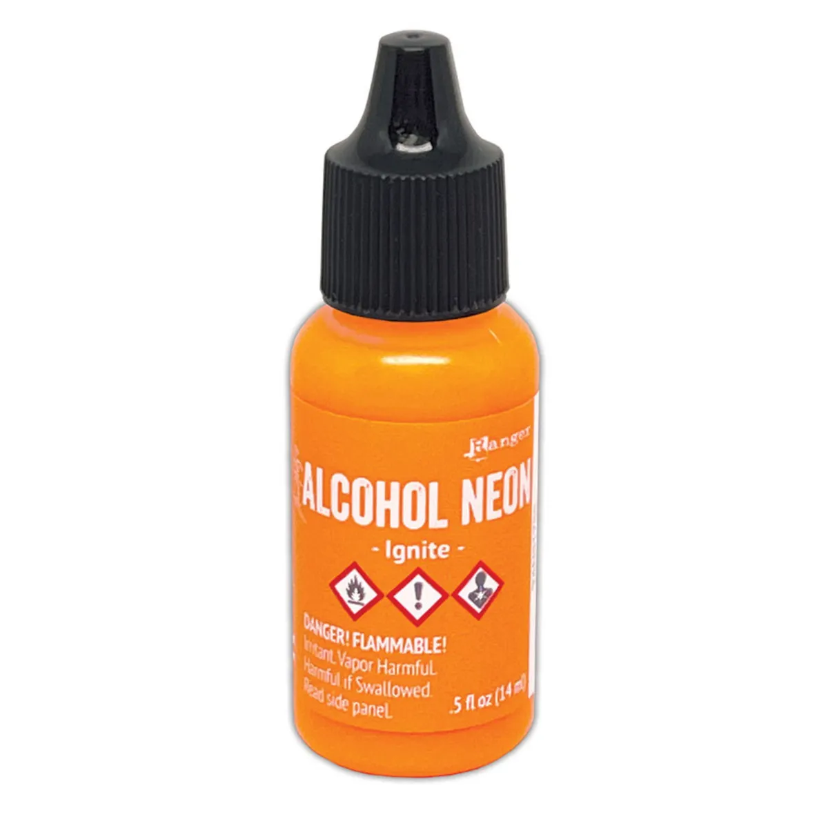 Entdecke Farbe mit den lebendigen Tönen der Tim Holtz Alcohol Neons. Diese Neon-Alkoholtinten sind permanent, schnelltrocknend und säurefrei – speziell entwickelt, um helle, leuchtende Effekte auf nicht-porösen Oberflächen zu schaffen. Verwende sie zusammen mit den Tim Holtz Alcohol Inks und mische sie mit der Alcohol Blending Solution. Ideal geeignet für Alcohol Ink Dura Lar und Yupo, Folienkarton, glänzendes Papier und vieles mehr.