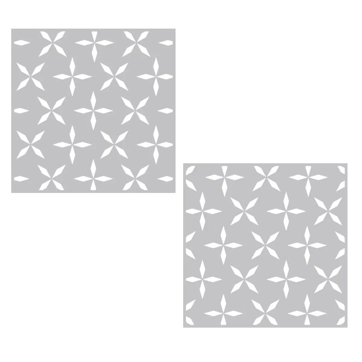 Entfalte deine Kreativität mit der Simon Hurley create. Spiral Stars Layering Schablone. Dieses dynamische Duo von 6" x 6" (15,24 cm x 15,24 cm) Schablonen zeigt ein kräftiges geometrisches Sternenmuster, das deinen Projekten Tiefe, Textur und visuelles Interesse verleiht.