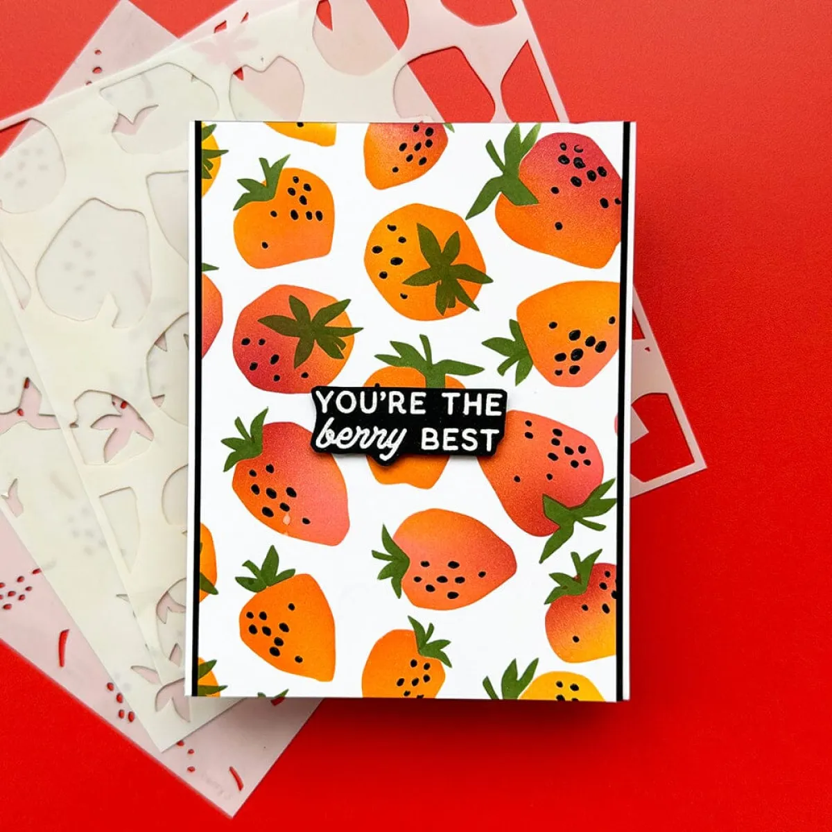 Verleihe deinen Projekten mit der Simon Hurley create. Very Berry Layering Stencil das gewisse Extra. Dieses 6" x 6" (15,2 cm x 15,2 cm) Set enthält drei aufeinander abgestimmte Schablonen, die zusammen geschichtet werden, um dimensional wirkende Erdbeeren zu gestalten. Ideal, um Karten, Journals, Scrapbooks und mehr Tiefe zu verleihen. Perfekt für die Verwendung mit Blending-Pinseln oder zum Hinzufügen von Textur mit Pasten und Sprays. Kombiniere die Schablone mit Simon Hurley create. Stellar- und Dye-Ink-Pads, Pasten, Solar Sprays und mehr, um handgemachte Karten und Bastelprojekte zu gestalten.