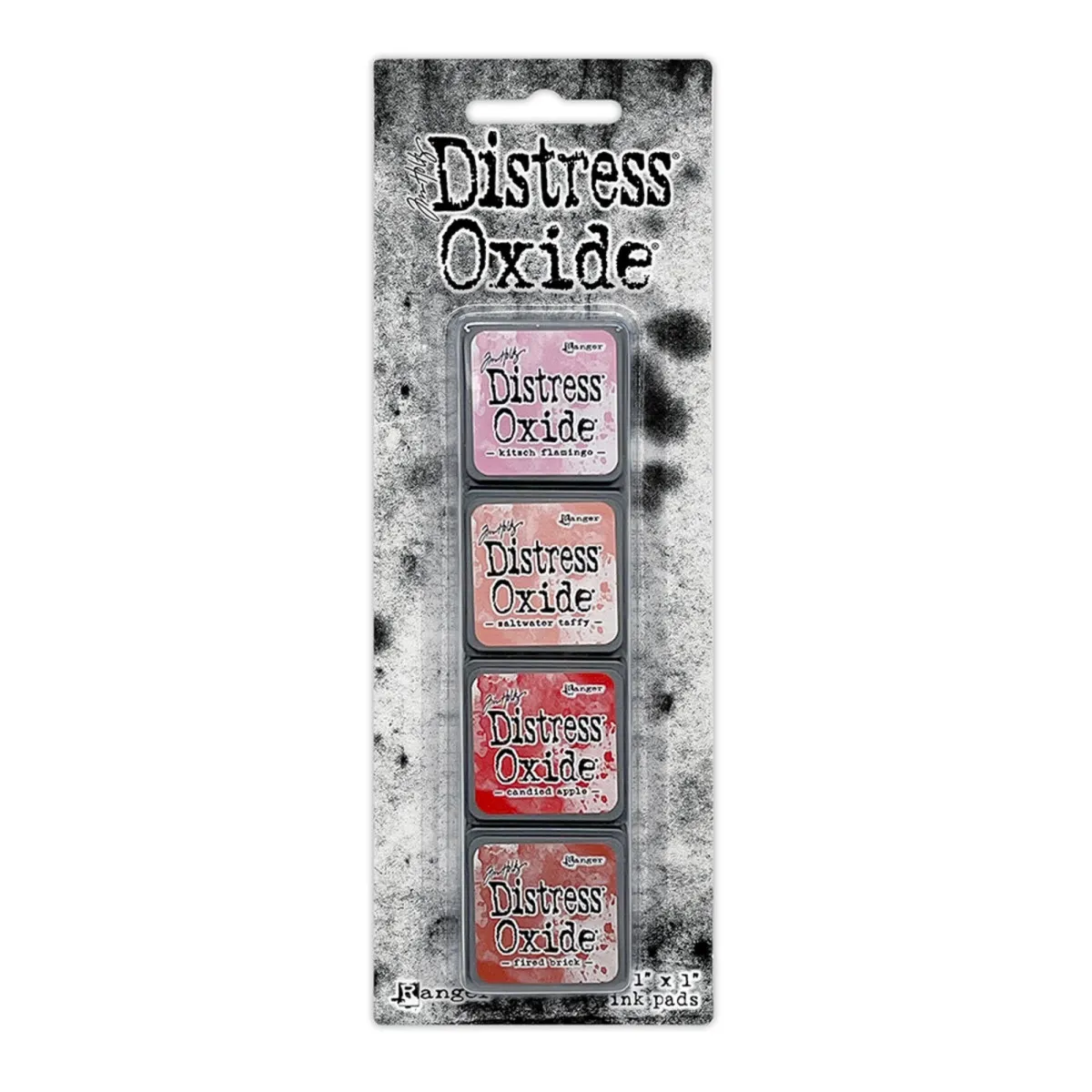 Die Tim Holtz Distress Mini Oxide Ink Pads sind kleine Stempelkissen (ca. 2,5 x 2,5 cm), die eine wasserreaktive Mischung aus Dye- und Pigmenttinte enthalten. Wenn du sie mit Wasser besprühst, entsteht ein toller oxidierter Effekt. Genau wie die größeren Varianten haben auch die Mini-Pads ein erhöhtes Filzpad mit farbechter Tinte, die perfekt mit der gesamten Distress-Farbpalette harmoniert.