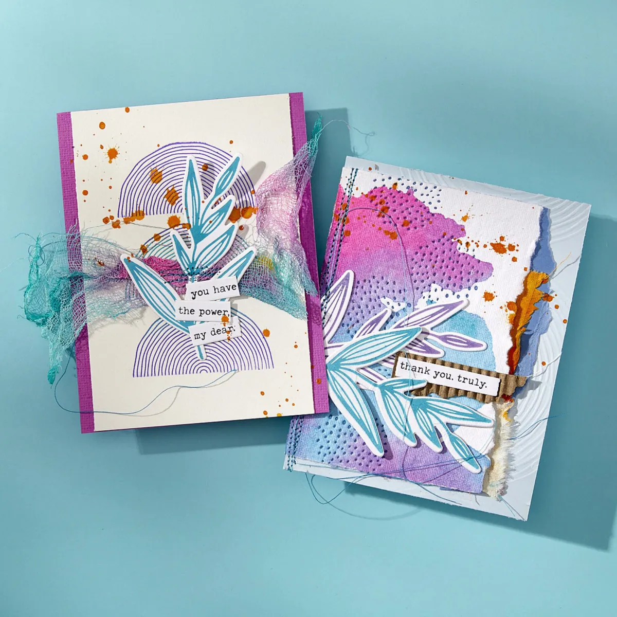Spellbinders freut sich sehr über die Zusammenarbeit mit der Mixed-Media-Künstlerin Dina Wakley! Bekannt für ihren ausdrucksstarken Stil und ihre künstlerische Ästhetik bringt Dina mit ihren Designs die verspielte und kreative Welt von Mixed Media und Collage in die Kartenkunst.