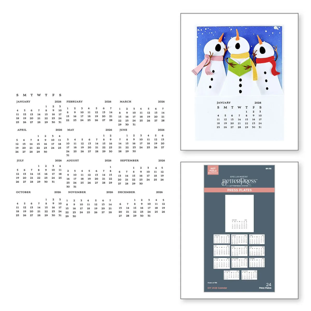 Die DIY 2026 Calendar BetterPress Plate ist Teil der Wonderland Kollektion. Das Set besteht aus 24 Platten, darunter ein Monatskalender für das gesamte Jahr sowie Wochentags- und Monatsnamenplatten, mit denen du deinen Kalender ganz individuell gestalten kannst. Mit diesem Set kannst du ganz einfach persönliche Kalender gestalten – ideal als Geschenk für die Feiertage.