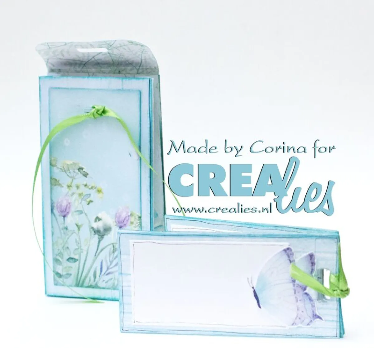 Fertige Box: 5,3 cm × 10,0 cm × 2,0 cm. Für das Anleitungsvideo siehe: Crealies auf YouTube.