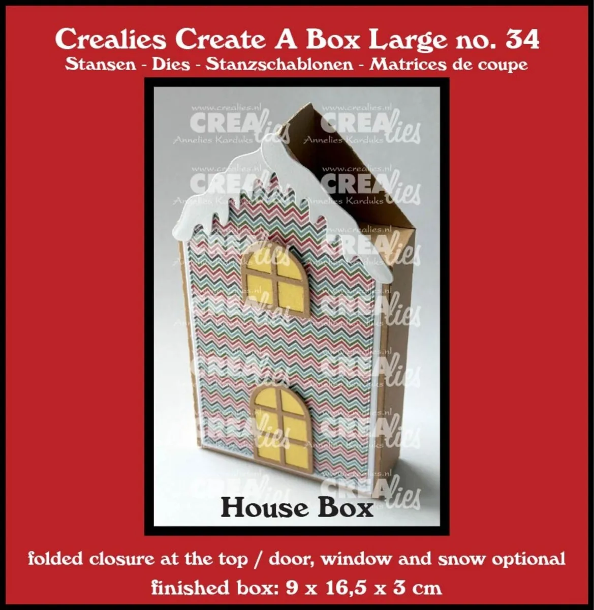Flache Box Haus mit Tür, Fenster und Schnee. Fertige große Box: 9 x 16,5 x 3 cm.