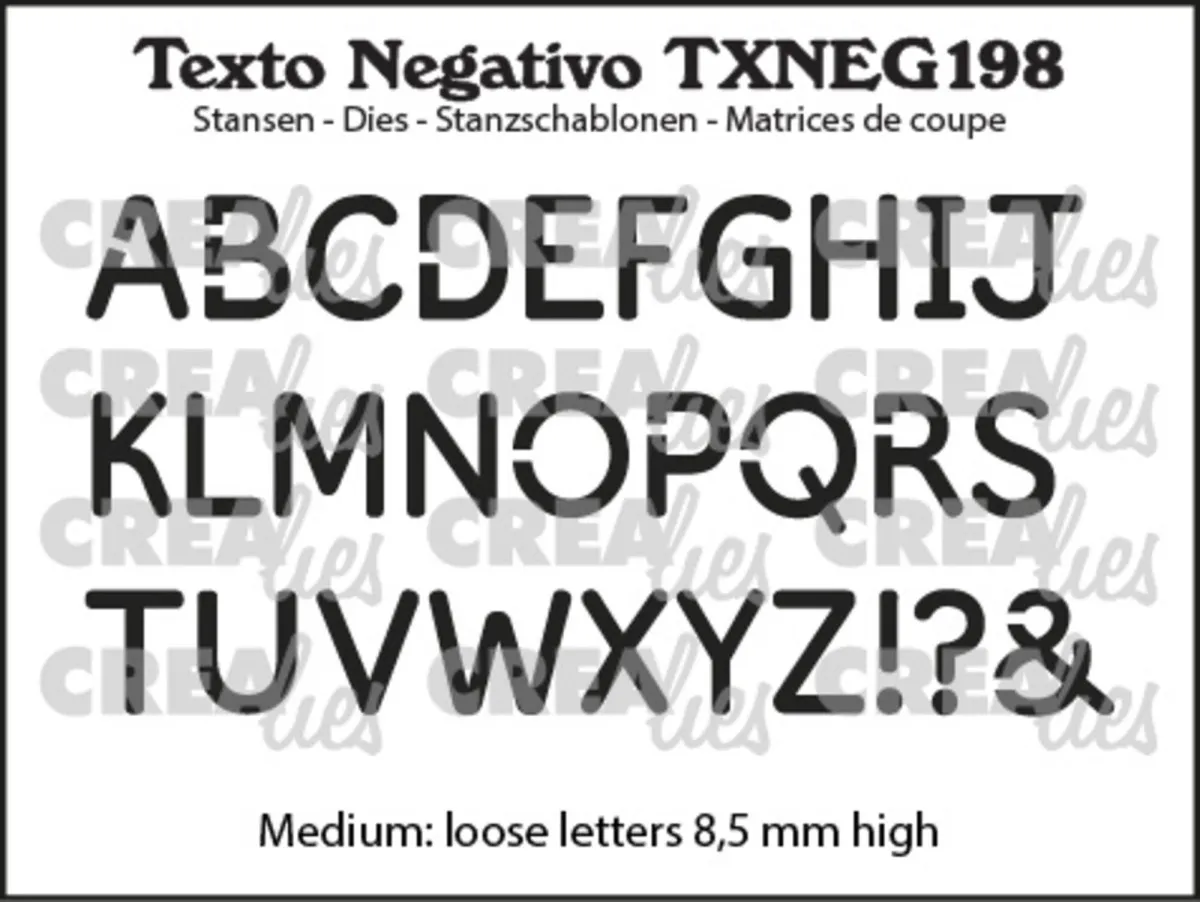 Texto Negativo von Crealies. Medium: lose Buchstaben mit einer Höhe von 8,5 mm.