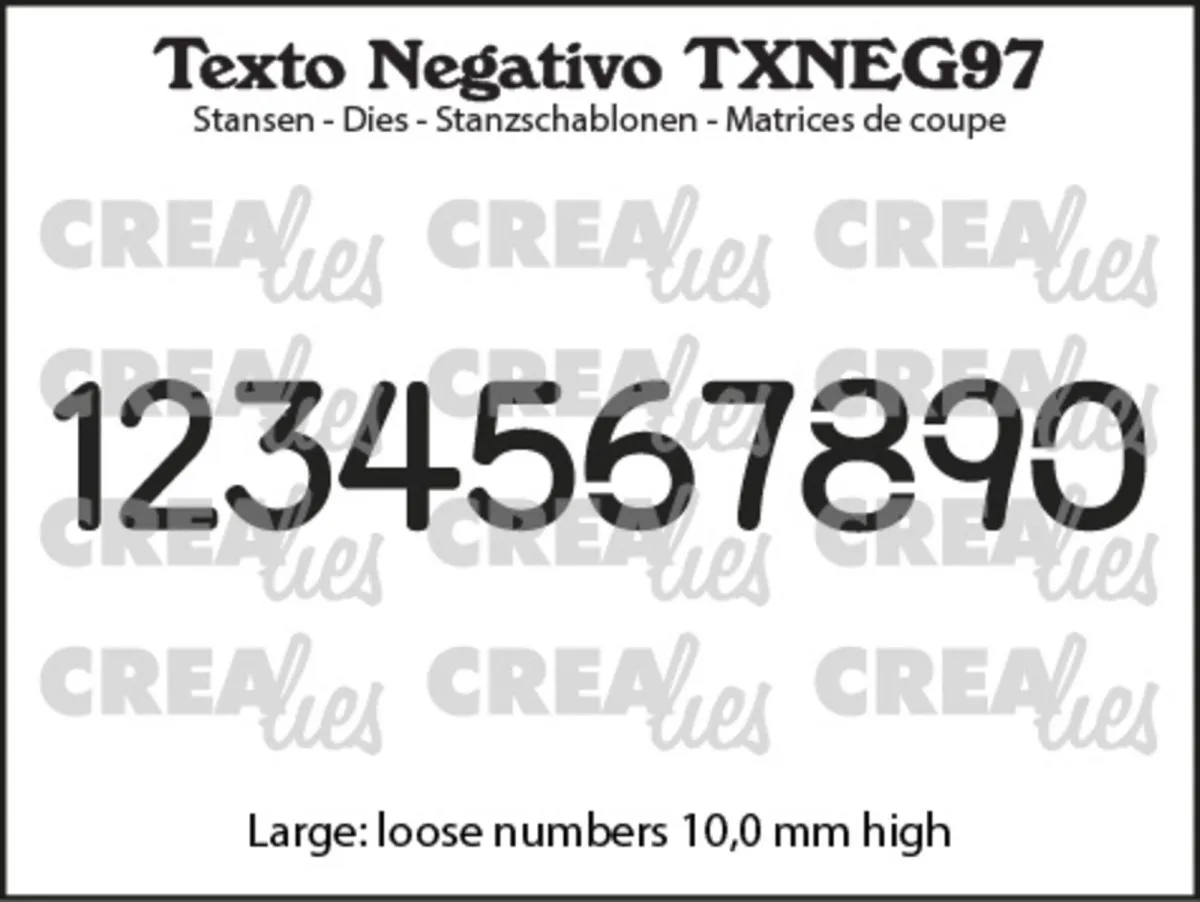 Texto Negativo von Crealies. Large: lose Zahlen mit einer Höhe von 10,0 mm.