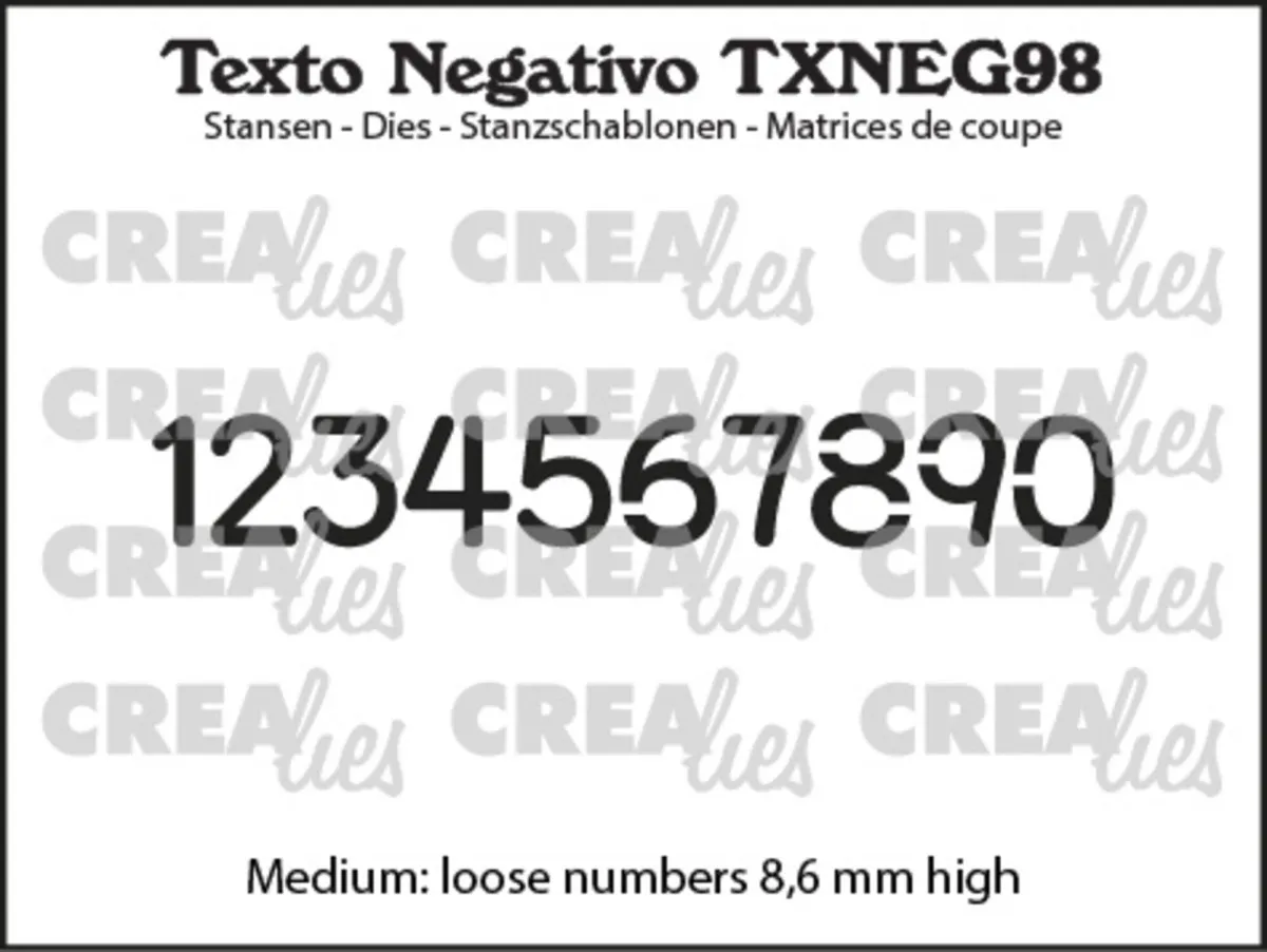 Texto Negativo von Crealies. Medium: lose Zahlen mit einer Höhe von 8,6 mm.