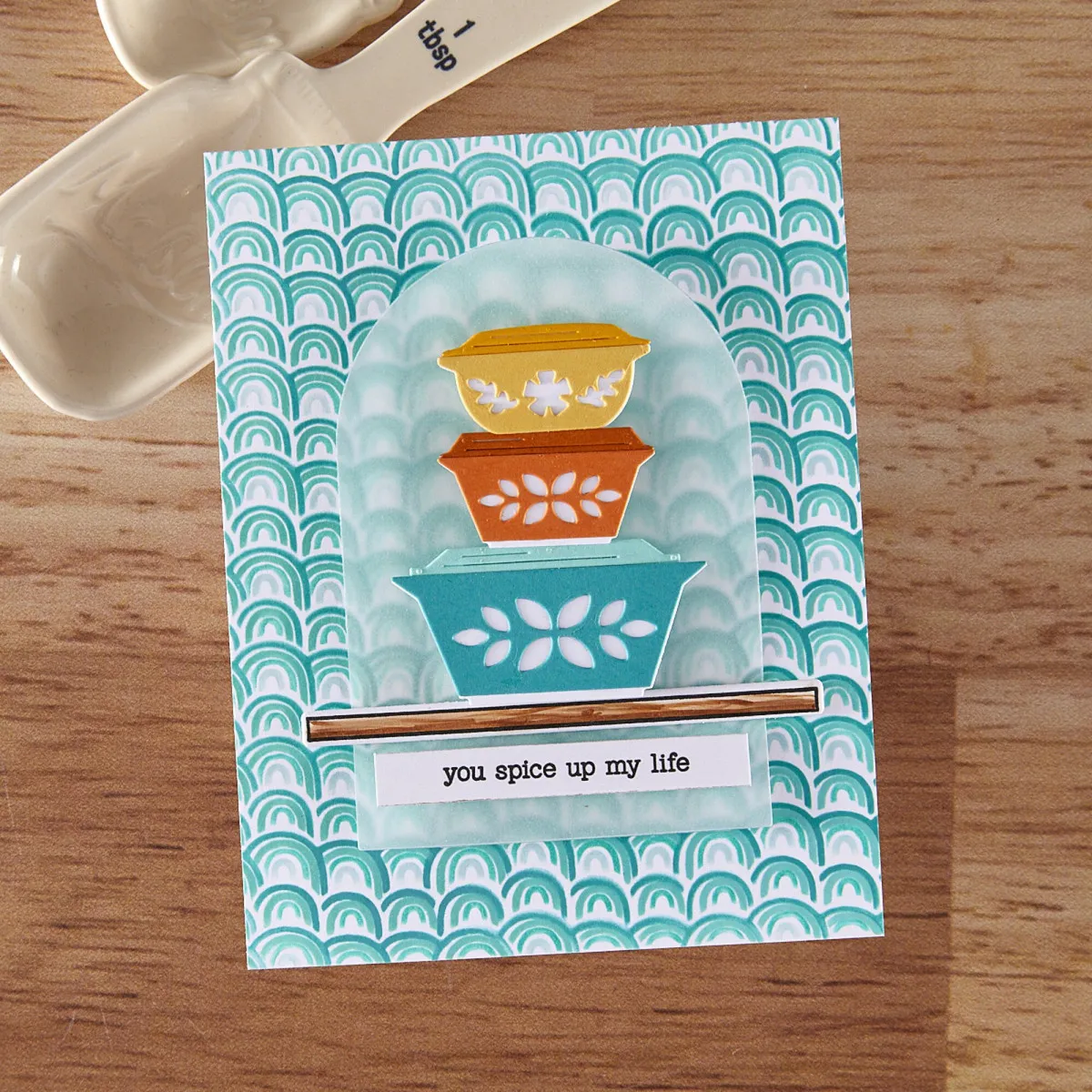 Gestalte einen fröhlichen und farbenfrohen Hintergrund mit den Color Layering Retro Rainbow Stencils aus der Retro Kitchen Collection. Dieses Set aus vier Schablonen im Format 15,2 x 15,2 cm (6" x 6") ergibt gemeinsam ein süßes, retro-inspiriertes Muster – perfekt als Hintergrund, aber auch eindrucksvoll genug, um allein im Mittelpunkt zu stehen. Wähle ein paar Farben für einen sanften Look oder nutze das ganze Farbspektrum und gestalte einen wunderschönen Regenbogen!