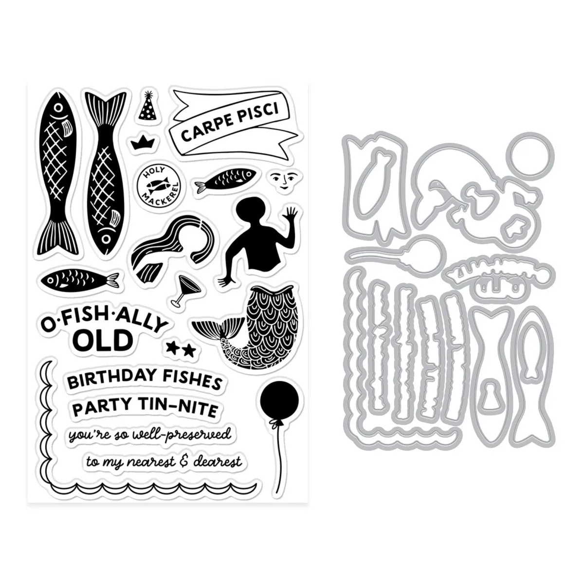 Well Preserved Stamp & Cut ist ein lustiges, wortspielreiches Clear Stamp- und Stanzset, das Geburtstags-Meilensteine mit skurrilen, meeresinspirierten Charakteren und markanten, handgezeichneten Akzenten feiert. Von „off-the-hook“-Grüßen bis zu augenzwinkernden Sprüchen bringt dieses Set Humor auf Geburtstagskarten für jedes Alter. Enthält 21 Clear Stamps und 17 passende Metallstanzen.
