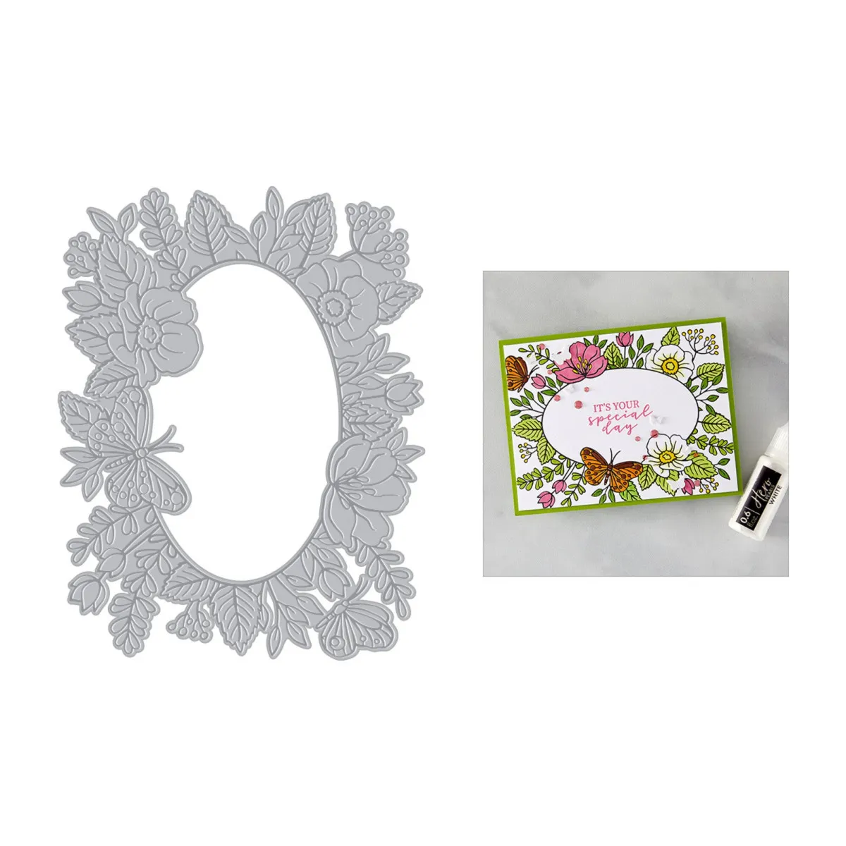 Die Floral Frame BetterPress & Foil Plate stammt aus der Lovely LetterPress Collection und kann mit der Spring Whimsy Collection kombiniert werden. Diese A2-Platte füllt die gesamte Kartenfront mit einem schönen Sprühnebel aus Grünpflanzen und Blumen, mit einem eleganten Schmetterling, der auf dem Rahmen sitzt. Die Mitte der Platte ist offen, perfekt um einen Spruch oder ein zusätzliches dekoratives Element hinzuzufügen. Karten sind mit dieser schnellen "einmal-umsetzen"-Platte so einfach und beeindruckend! Tinte die Platten mit Hero Arts Intensified Black Ink oder BetterPress Black, um einen kräftigen Eindruck zu hinterlassen, den du sowohl sehen als auch fühlen kannst. Diese Sprüche kommen besonders gut zur Geltung, wenn du sie für das Prägen mit Folie verwendest. Kombiniere sie mit deiner Lieblingsfolie und dem Glimmer Hot Foil System von Spellbinders. Der Letterpress Relief funktioniert besonders gut, wenn er mit dickem Papier wie Hero Arts Aquarellpapier oder den BetterPress Cotton Card Panels kombiniert wird. Achte darauf, alle Shimms zu verwenden, um die besten Ergebnisse zu erzielen. Genieße all deine Folien-, Debossing- und eingefärbten Impressionen mit der BetterPress + Foil Plate von Hero Arts!