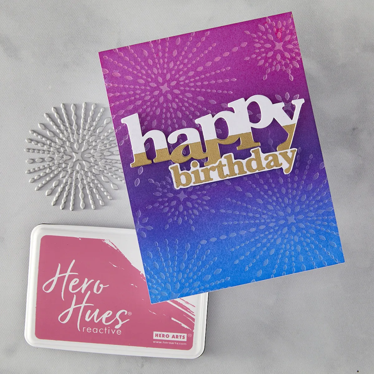 Das Starburst BetterPress & Foil Plate Set stammt aus der Lovely LetterPress Collection. Es kann mit der Let's Celebrate Collection kombiniert werden. Perfekt für Feierlichkeiten oder um die Superstars in deinem Leben zu würdigen, enthält dieses Set vier verschiedene Größen und Stile von Sternenexplosionen. Erstelle ein Muster mit mehreren Platten oder benutze nur eine für einen einfachen Blickfang auf deiner Karte. Tinte die Platten mit Hero Arts Intensified Black Ink oder BetterPress Black, um einen kräftigen Eindruck zu hinterlassen, den du sowohl sehen als auch fühlen kannst. Diese Sprüche kommen besonders gut zur Geltung, wenn du sie für das Prägen mit Folie verwendest. Kombiniere sie mit deiner Lieblingsfolie und dem Glimmer Hot Foil System von Spellbinders. Der Letterpress Relief funktioniert besonders gut, wenn er mit dickem Papier wie Hero Arts Aquarellpapier oder den BetterPress Cotton Card Panels kombiniert wird. Achte darauf, alle Shimms zu verwenden, um die besten Ergebnisse zu erzielen. Genieße all deine Folien-, Debossing- und eingefärbten Impressionen mit der BetterPress + Foil Plate von Hero Arts!