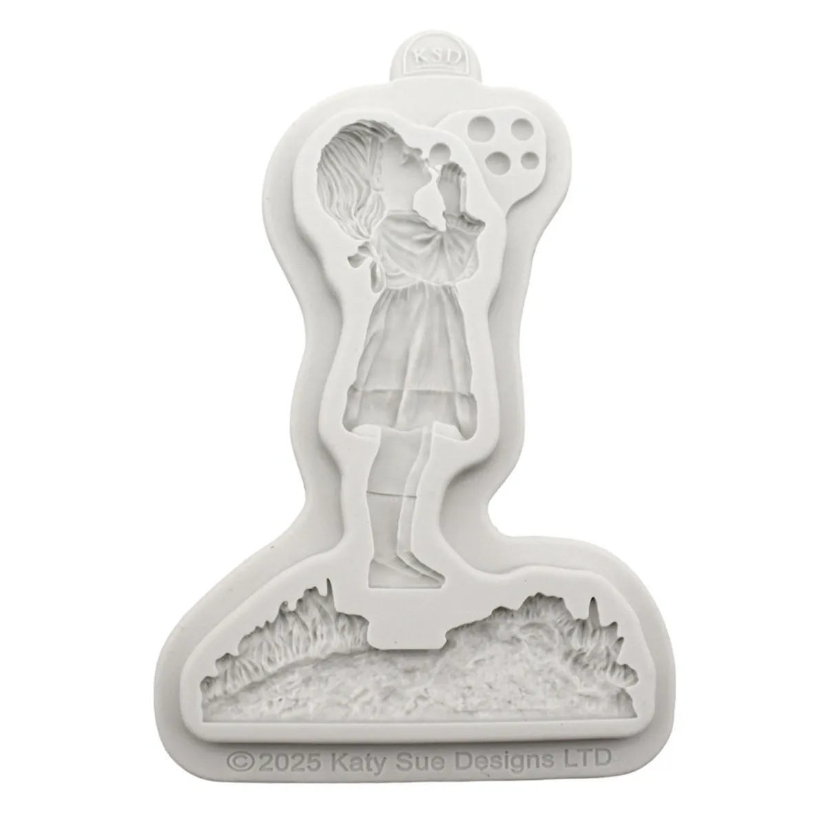 Halte einen Moment purer kindlicher Wunder fest mit dieser wunderschön detaillierten Silikonform von Andy Skinner. Inspiriert von Andys originalem „Blowing Bubbles“-Stempel zeigt die Form die zarte Silhouette eines jungen Mädchens im Profil, das fröhlich Seifenblasen in die Luft pustet. Das Design ist erfüllt vom zeitlosen Charme und der Unschuld vergangener Tage und spiegelt Andys eigene Familienerinnerungen sowie die Magie fantasievollen Spiels wider.
