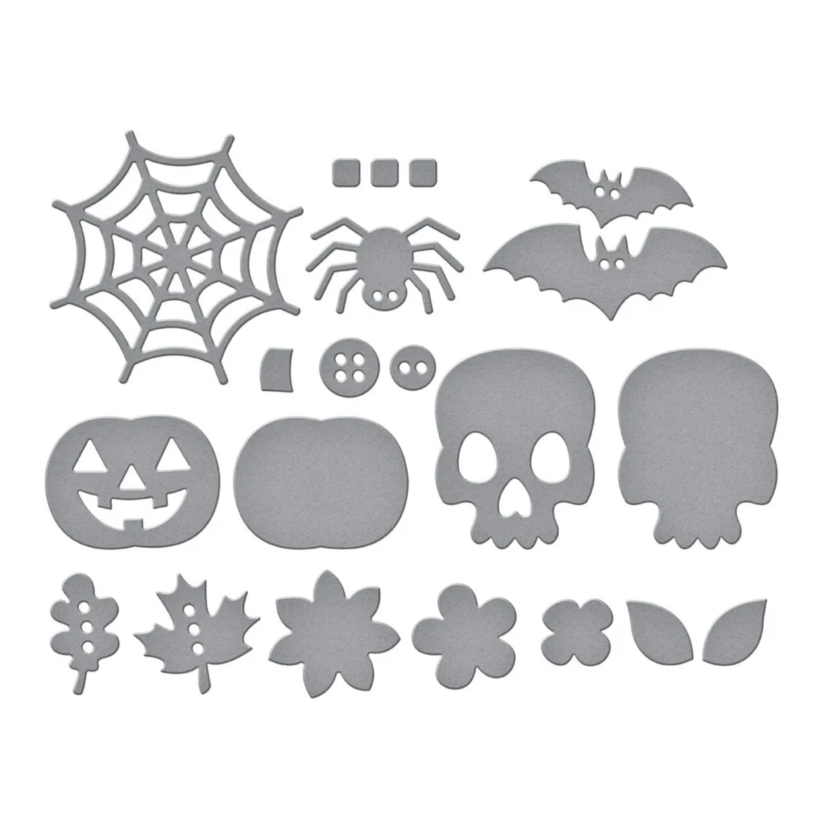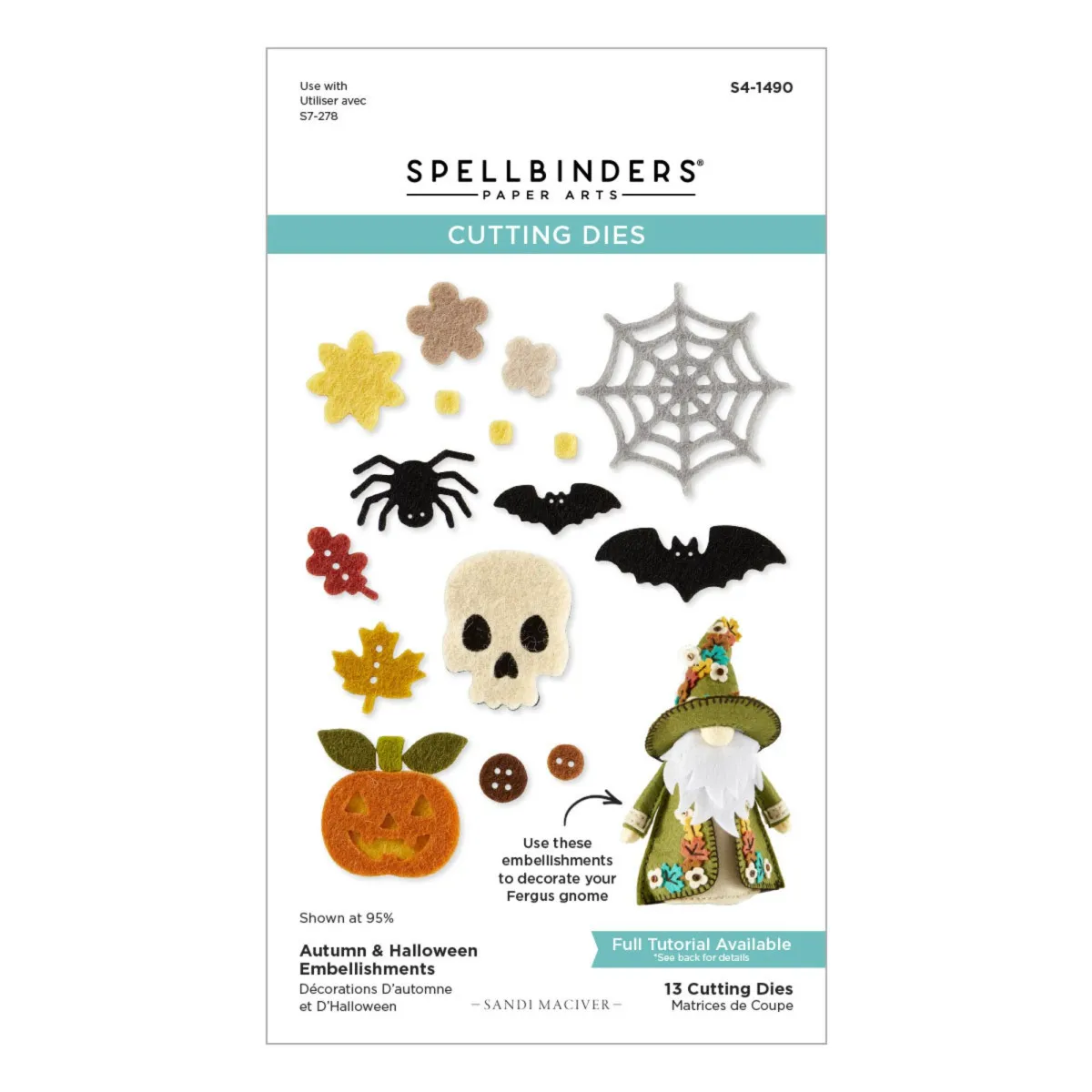 Die „Autumn & Halloween Embellishment Etched Dies“ stammen aus der 3D Felt Décor Collection von Sandi MacIver. Verwende dieses Set aus 13 dünnen Metallstanzformen als Akzente auf deinen Projekten, gruppiere sie zu einem Arrangement oder nutze sie, um S7-278 Fergus zu verzieren. Es ist ein wunderbares Set, um die Herbst- und Halloweenzeit zu feiern! Um deinen Projekten noch mehr Charme zu verleihen, kannst du kleine süße Knöpfe aus unserer Embellishment-Abteilung hinzufügen.