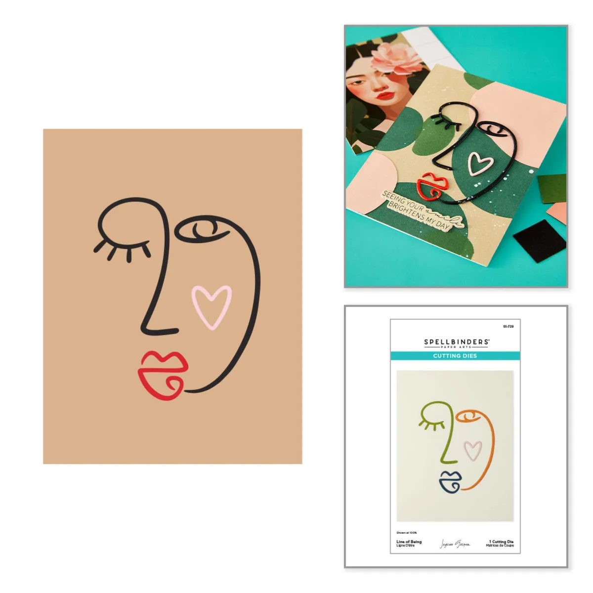 Die Line of Being Etched Die ist Teil der All My Senses Collection von Jaycee Gaspar. Schon eine dünne Metall-Stanzform reicht aus, um ein abstraktes Linien-Design eines wunderschönen weiblichen Gesichts zu schneiden – mit einem Augenzwinkern, einer herzförmigen Wange und einer hübschen Lippenkontur! Sie bildet einen atemberaubenden Blickfang auf der Vorderseite einer Karte.