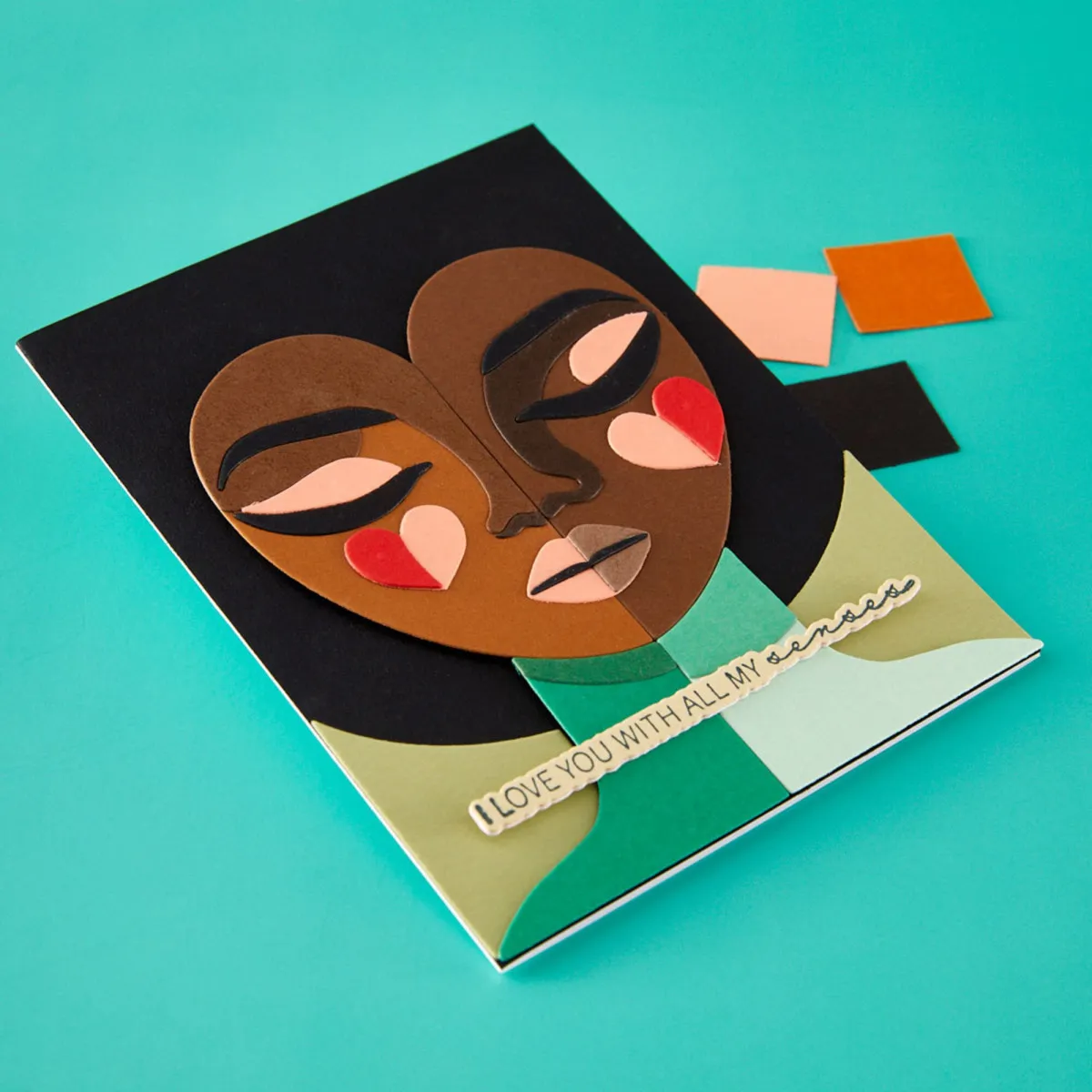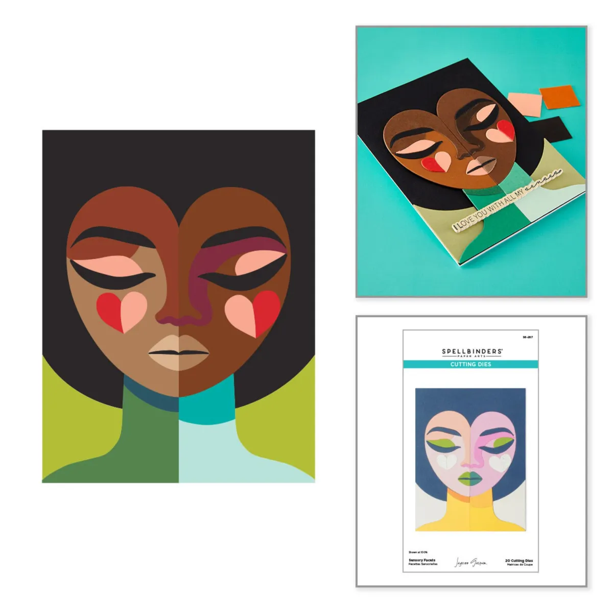 Die Sensory Facets Etched Dies sind Teil der All My Senses Collection von Jaycee Gaspar. Das Set aus 20 dünnen Metall-Stanzformen erstellt ein markantes Gesicht mit herzförmigem Kopf und zwei herzförmigen Wangen. Das Gesicht besteht aus vielen schrägen Einzelteilen, die ihr zahlreiche Facetten der Persönlichkeit verleihen! Das fertige Design misst ungefähr 5,50 x 4,25 in./14,00 x 10,80 cm.