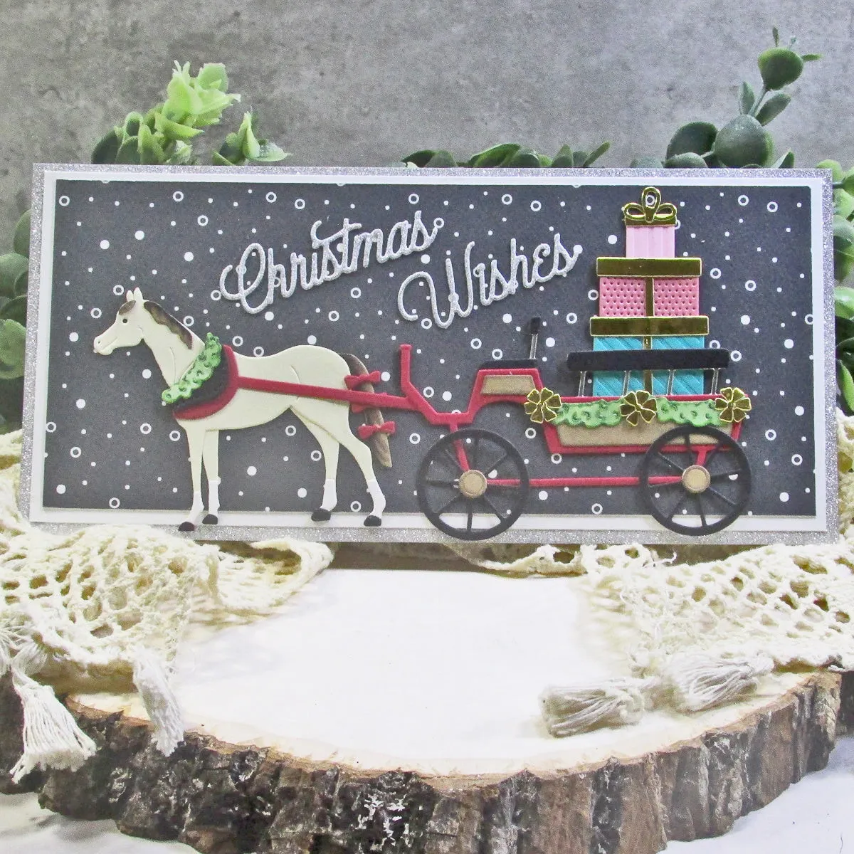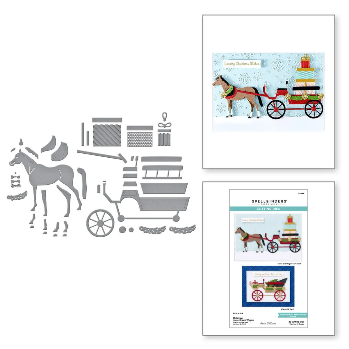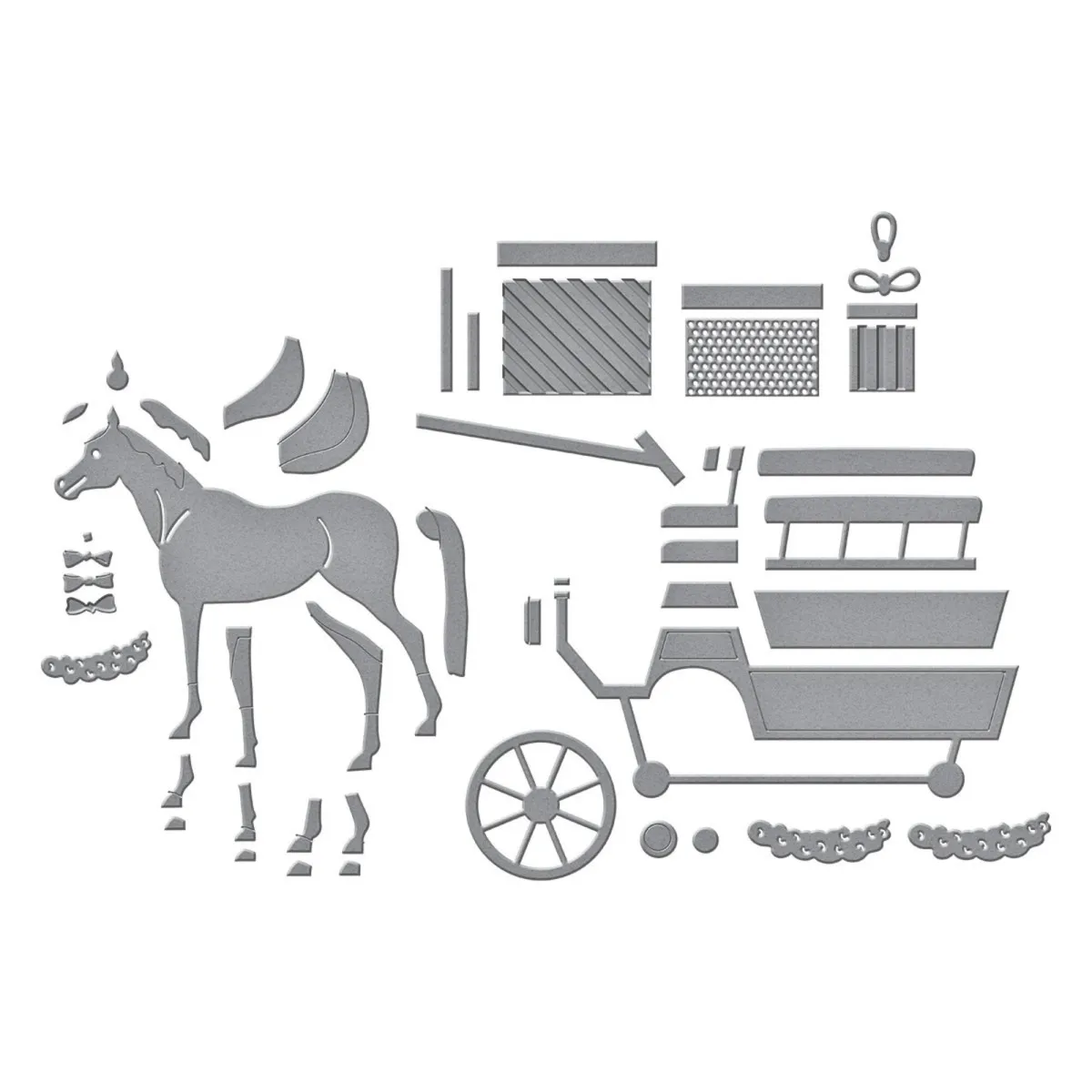 Die „Christmas Horse-Drawn Wagon“ Stanzschablonen sind Teil der Country Christmas Kollektion von Annie Williams. Weihnachten ohne einen pferdegezogenen Wagen voller Geschenke? Undenkbar! Dieses Set aus 22 dünnen Metallstanzschablonen hilft dir, genau so einen Wagen für dein Projekt zusammenzustellen. Alle Details sind enthalten – von Geschenken, Schleifen bis hin zu einem festlichen Halskranz für das Pferd! Du kannst das Set auch schlicht lassen, um es das ganze Jahr über zu nutzen. Elemente eines ländlichen Weihnachtsstils sind in dieser Country Christmas Kollektion von Annie Williams liebevoll zusammengestellt. Verleihe deinen kommenden Weihnachtsprojekten eine gemütlich-rustikale Atmosphäre!