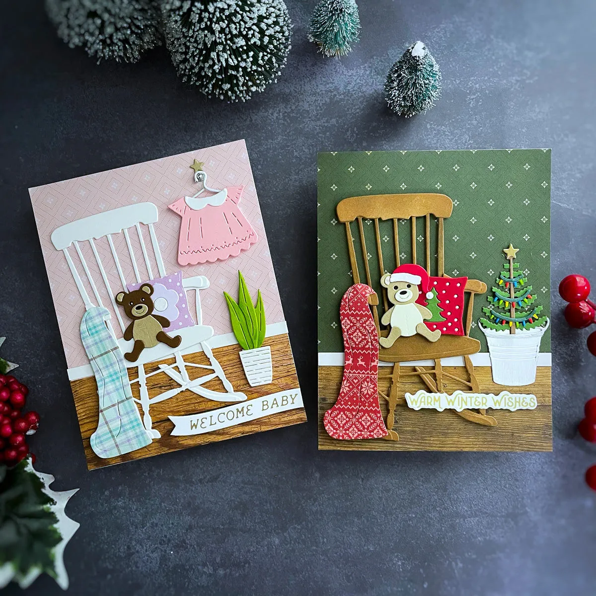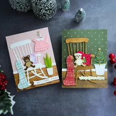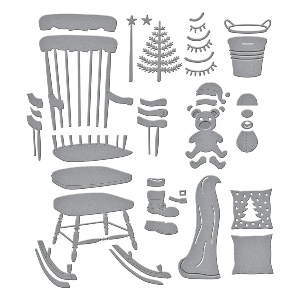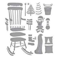 Die „Christmas Rocking Chair“ Stanzschablonen stammen aus der Country Christmas Kollektion von Annie Williams. Füge deinem Projekt mit diesem Set aus 26 dünnen Metallstanzschablonen einen warmen Schaukelstuhl hinzu – perfekt für eine gemütliche Weihnachtsstimmung. Mit vielen Zubehörteilen kannst du deinen Look individuell gestalten! Elemente eines ländlichen Weihnachtsstils wurden in dieser Country Christmas Kollektion von Annie Williams liebevoll zusammengestellt. Verleihe deinen kommenden Weihnachtsprojekten eine gemütlich-rustikale Atmosphäre!