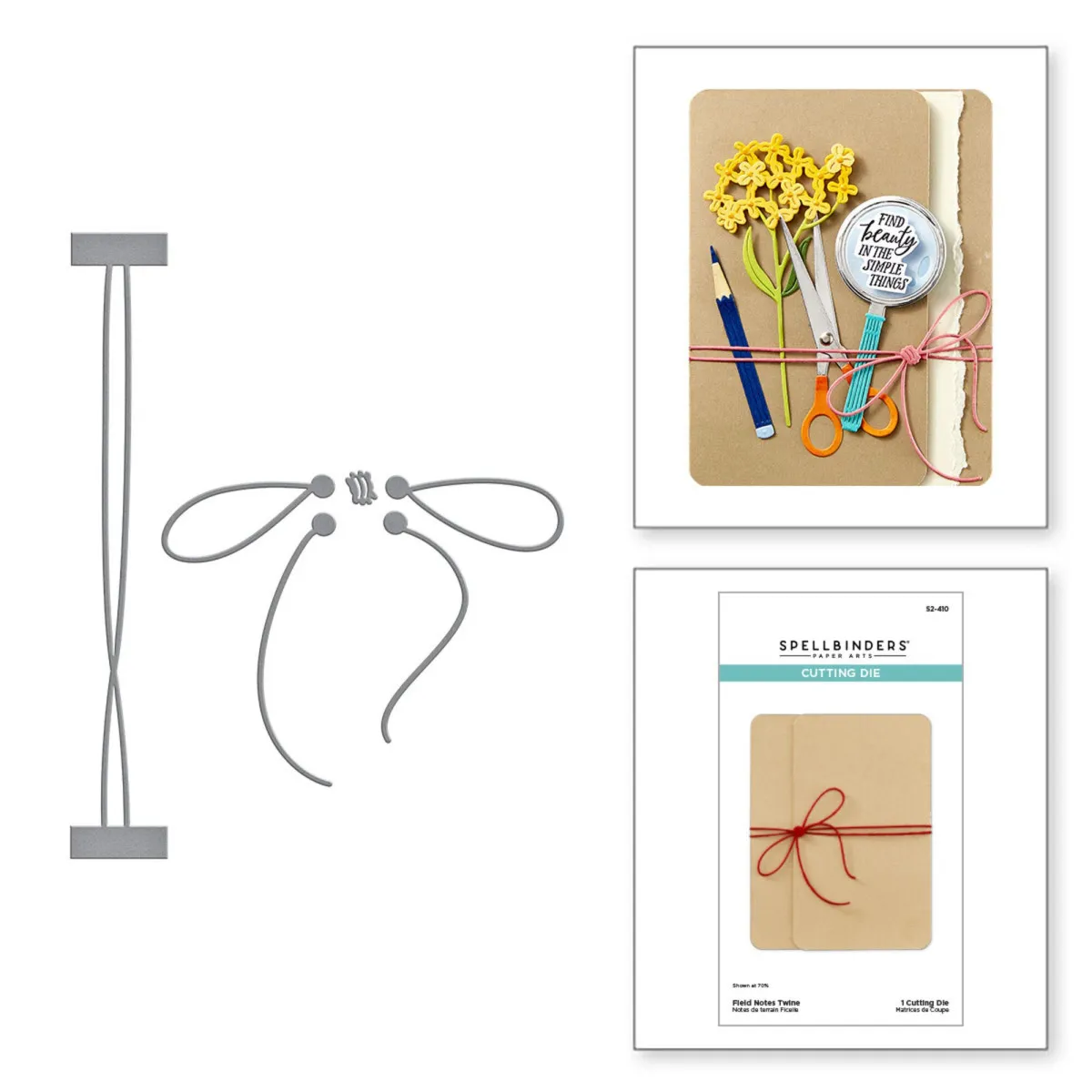 Field Notes Twine Etched Dies sind Teil der Field Notes Collection. Mit diesem Set aus filigranen Stanzformen kannst du einem 5 Zoll (ca. 12,7 cm) breiten Büchlein den letzten Schliff auf der Vorderseite verleihen. Klebe die Kordel mit der doppelt geschwungenen Schleife um ein Büchlein, eine Kartenfront oder sogar ein Etikett – es gibt unzählige Gestaltungsmöglichkeiten!