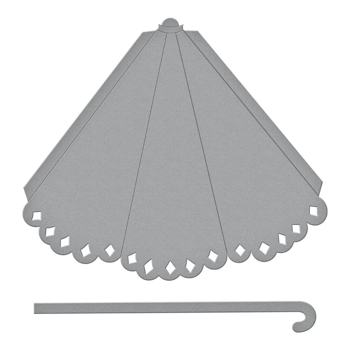 Die „Garden Parasol“ Stanzformen gehören zur „Birds & Bees Garden“-Kollektion von Susan Tierney-Cockburn. Dieses Set aus zwei filigranen Metallstanzen ergibt einen bezaubernden Sonnenschirm. Es macht richtig Spaß und bringt eine verspielte Note in jedes Projekt.