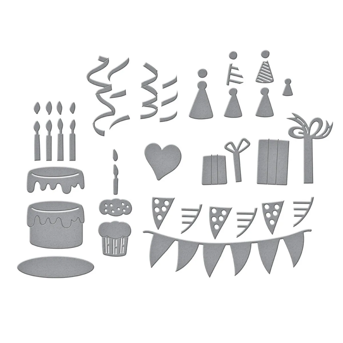 Die Classic Pooh Birthday Accessories Metallstanzen sind Teil der Say Cheese Classic Pooh Birthday Kollektion. Dieses Set aus 17 dünnen Metallstanzformen bietet dir alles, was du brauchst, um Geburtstage stilvoll zu feiern! Von Geburtstagskuchen, Cupcakes, Partyhüten, Bannern, Luftschlangen bis hin zu Geschenken – du kannst die perfekte Party-Atmosphäre mit den Freunden aus dem Hundert-Morgen-Wald schaffen. Kombiniere sie mit den anderen Stanzen aus dem Set, um alle Figuren in die Feier einzubeziehen. Diese besondere Zusammenarbeit mit Simple Stories erweckt eine wundervolle Gruppe von Kindheitsfreunden zum Leben! Zusammen mit der Say Cheese Classic Pooh Birthday Kollektion aus Papieren und Stempeln bringt dieses süße Set Dimension und Struktur auf ein neues Level für Pooh-Papierbastler!