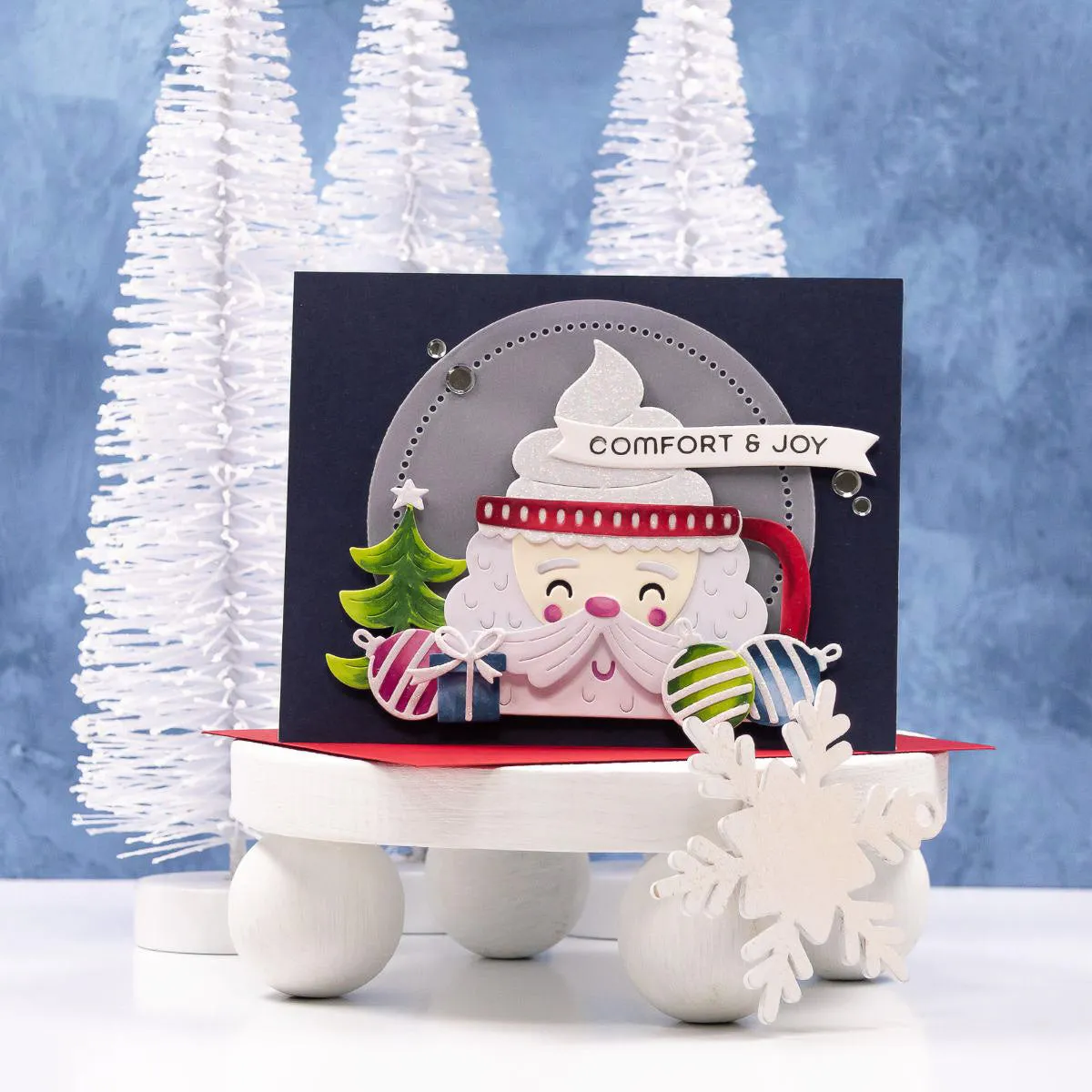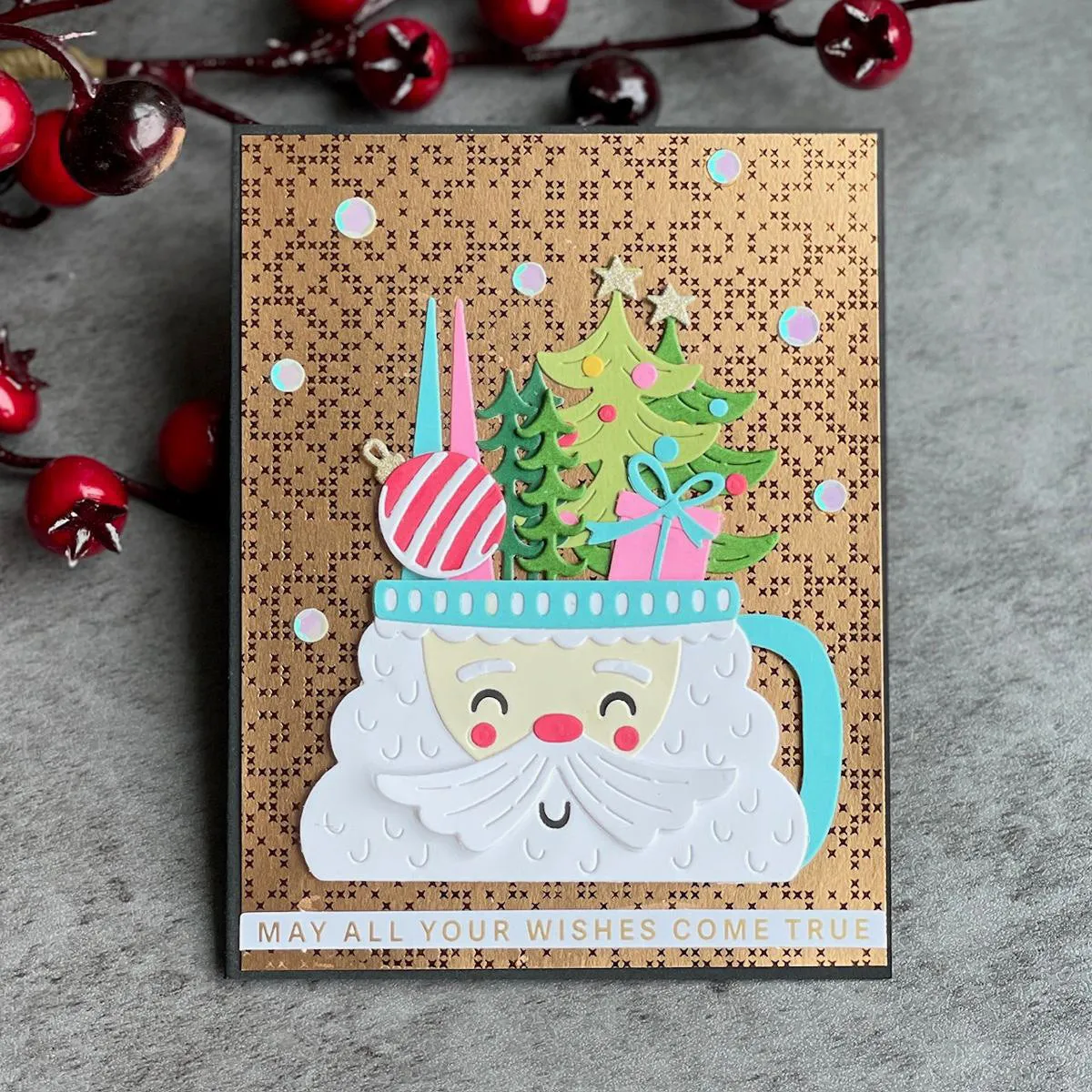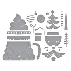Die „Cocoa Wonderland“ Stanzformen gehören zur Wonderland Kollektion. Mit diesem Set aus 20 dünnen Metallstanzen kannst du eine bezaubernde Kakaotasse gestalten, die mit vielen kleinen Überraschungen gefüllt ist. Füge Accessoires wie Weihnachtsbäume, Christbaumschmuck, Geschenke und mehr in diese wunderschöne Tasse vom Alten Weihnachtsmann hinzu.