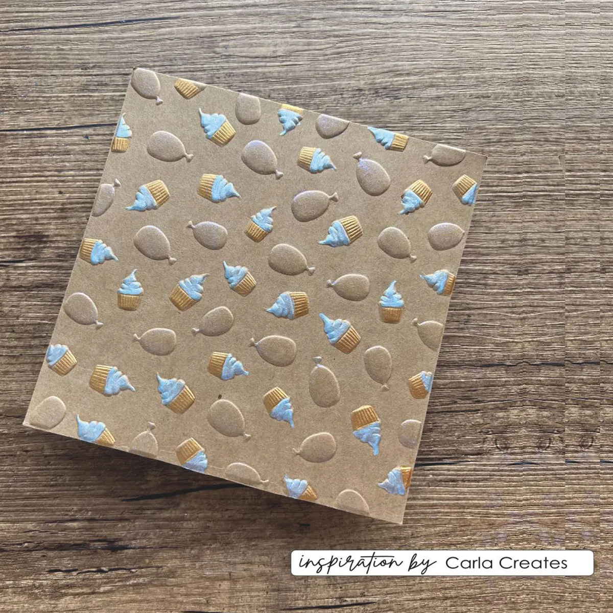 Dieser Vaessen Creative Prägefolder (auch Prägeform oder auf Englisch „embossing folder“ genannt) zeigt ein Design mit festlichen Cupcakes und Ballons. Mit einem Prägefolder kannst du ganz einfach leichte 3D-Designs auf deinen Karten und anderen Papierbasteleien hinzufügen. Diese Stanzschablonen gehören zur ‚Odey's Birthday Party‘-Kollektion und wurden von der Illustratorin Carla Creates entworfen, die fröhliche Zeichnungen, Karten und Porträts mit Bleistift, Tusche und Farbe gestaltet. Die Embossing Folder von Vaessen Creative sind perfekt, wenn du gerne deine eigenen Karten gestaltest, z. B. Geburtstags-, Geburtstags- oder Weihnachtskarten. Erzeuge 3D-Effekte und verleihe deinem Papierbastelprojekt Tiefe.