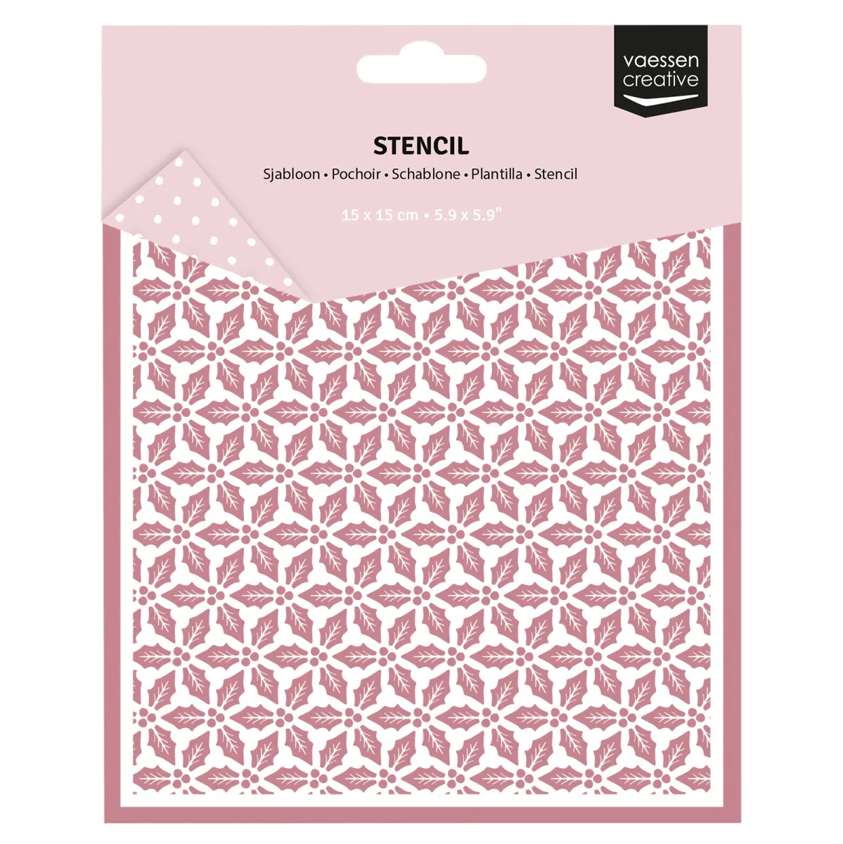 Mit dieser tollen Schablone (auf Englisch Stencil genannt) von Vaessen Creative verleihst du all deinen Karten, Scrapbooks oder Journal-Seiten im Handumdrehen eine kreative Note. Diese Schablone gehört zur „Jolly Mail Collection“, der Weihnachtskollektion 2025 von Vaessen Creative. Mit einer Größe von 15 x 15 cm ist diese Siebdruck-Schablone mit Stechpalmenblättern ideal als Hintergrund einsetzbar. Die Schablone ist aus robustem Kunststoff gefertigt, leicht zu reinigen und kann immer wieder auf Papier, Tonkarton oder Pappe verwendet werden. Kombiniere die Schablone mit Tinte, Farbstiften oder Blending Brushes für besondere Ergebnisse.