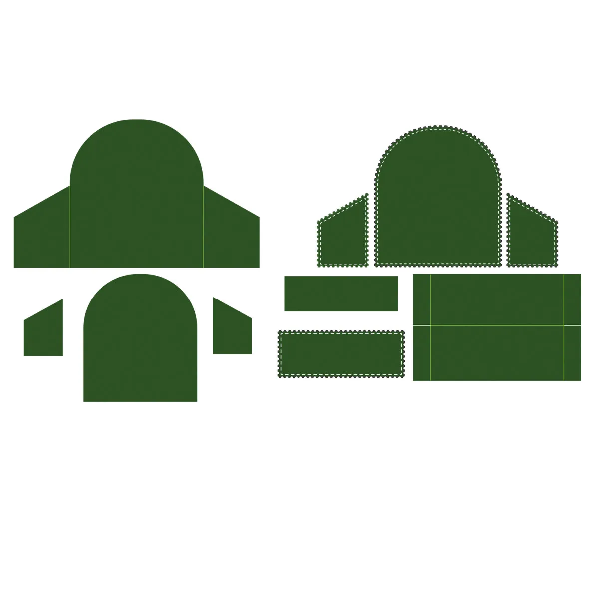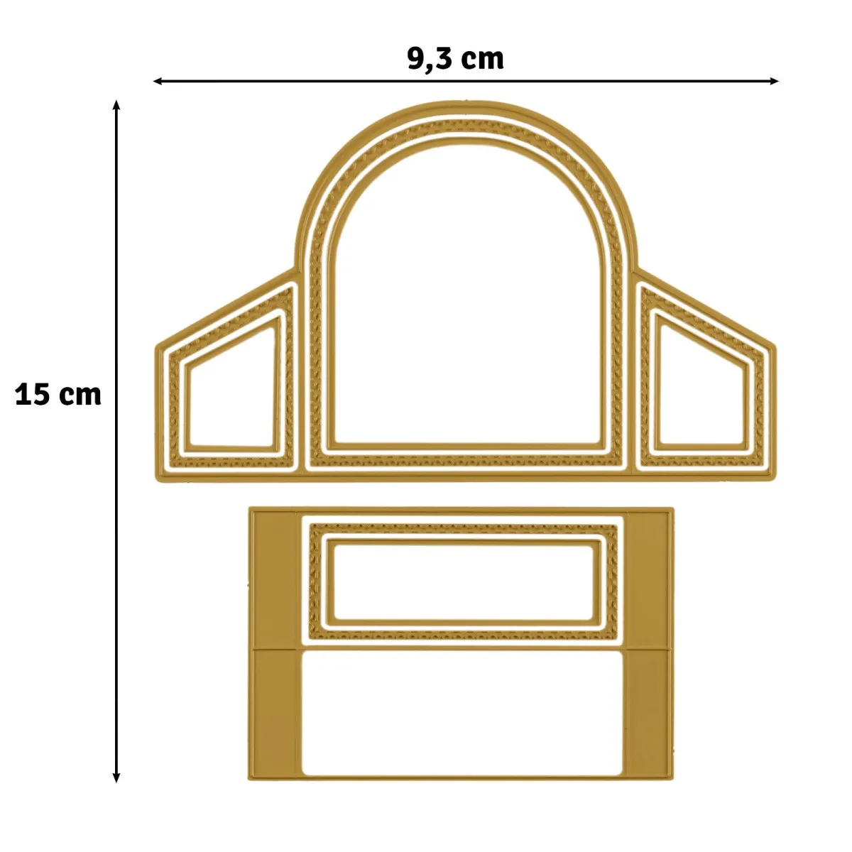 Maße der Schneideschablonen: 2 x 7 cm – 3 x 8 cm – 2,5 x 3,5 cm – 3 x 4,5 cm – 7 x 8 cm – 8 x 9 cm – 15 x 9,3 cm – 6,5 x 10 cm