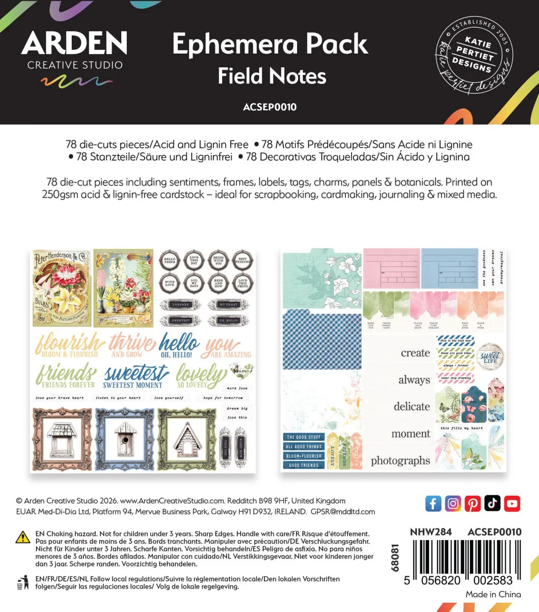 Verleihe deinen Projekten eine sorgfältig zusammengestellte Auswahl an vintage-inspirierten Elementen mit dem Field Notes Ephemera Pack von Katie Pertiet.