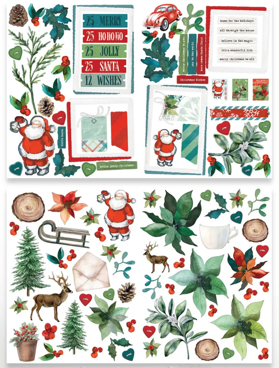 Verleihe deinen festlichen Projekten sofort Charme und vielschichtige Details mit den Season of Joy Laser Cuts von Katie Pertiet. Dieses unverzichtbare Dekoset enthält 2 doppelseitige Bögen aus 250 g/m² säure- und ligninfreiem Karton mit insgesamt 107 wunderschön geschnittenen Teilen. Sorgfältig gestaltet und voller Vielfalt, umfassen die Motive Anhänger, Rahmen, Briefmarkenelemente, festliche Umschläge und eine Reihe ikonischer Weihnachtsmotive – von klassischen Weihnachtsmännern und Rehen bis hin zu immergrünen Pflanzen und Katies charakteristischen botanischen Designs. Jedes Teil lässt sich leicht herauslösen und sofort verwenden, was dir schnelle und stilvolle Dekoration für deine Scrapbook-Seiten, Karten, Journals und Geschenkverpackungen bietet. Dank der doppelseitigen Bedruckung sind diese Laser Cuts besonders vielseitig einsetzbar und die perfekte Ergänzung für dein Weihnachtshandwerk – egal, ob du es auffällig oder eher weich und vintage magst.