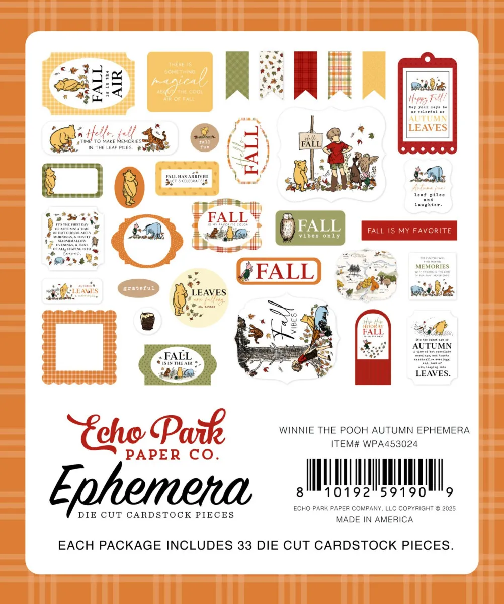 Die Cut Cardstock Pieces - Winnie The Pooh Autumn - Ephemera