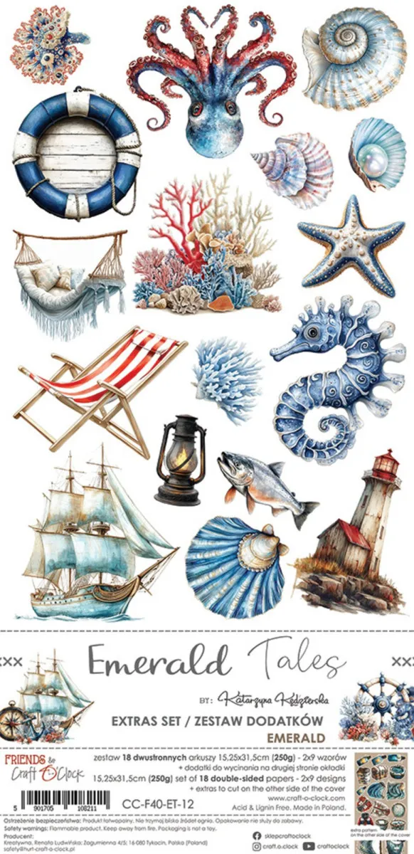 Ein Set aus 18 doppelseitigen Seiten hochwertigen Scrapbooking-Papiers mit zusätzlichen Elementen zum Ausschneiden (2x9 Designs) plus 1 Blatt mit EXTRA-AUSSCHNITTEN auf der Rückseite des Covers. Jede Seite hat eine Größe von 15,3 x 31,5 cm. Das Papier wiegt 250 g/m². Dieses Produkt ist säure- und ligninfrei.