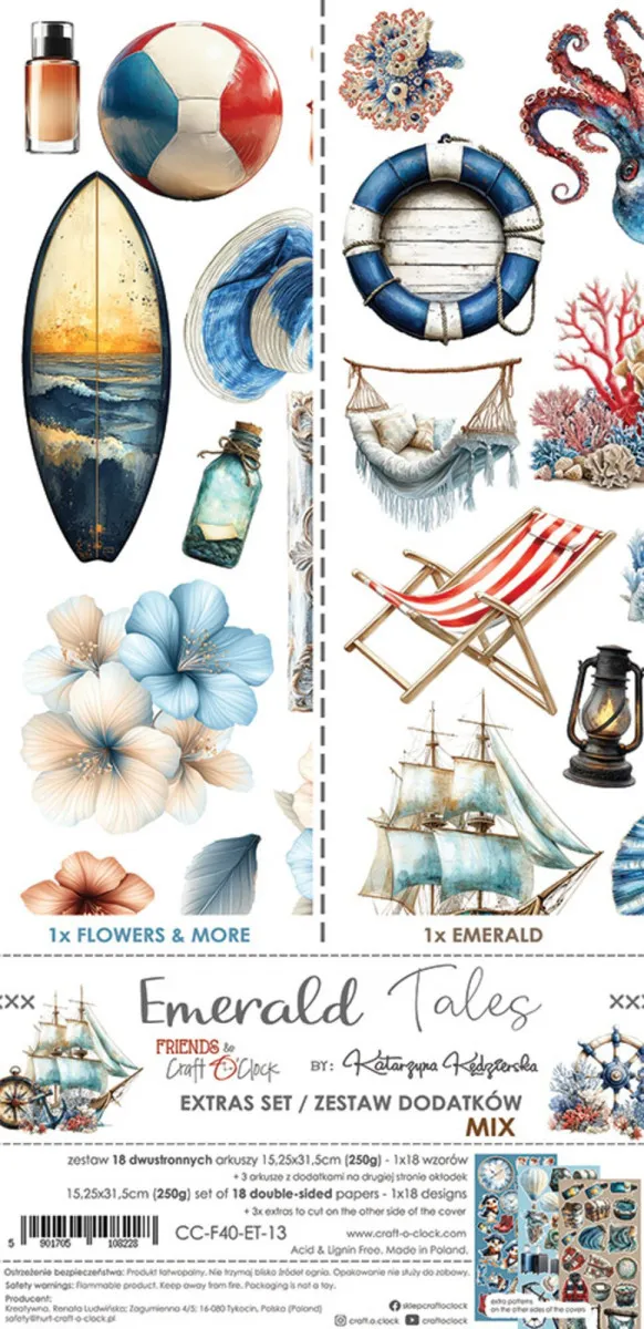 Ein Set aus 18 doppelseitigen Seiten hochwertigem Scrapbooking-Papier mit zusätzlichen Elementen zum Ausschneiden (1x18 Designs) plus 3 Blätter mit EXTRA-AUSSCHNITTEN auf der Rückseite des Covers. Jede Seite hat eine Größe von 15,3 x 31,5 cm. Das Papier wiegt 250 g/m². Dieses Produkt ist säure- und ligninfrei.