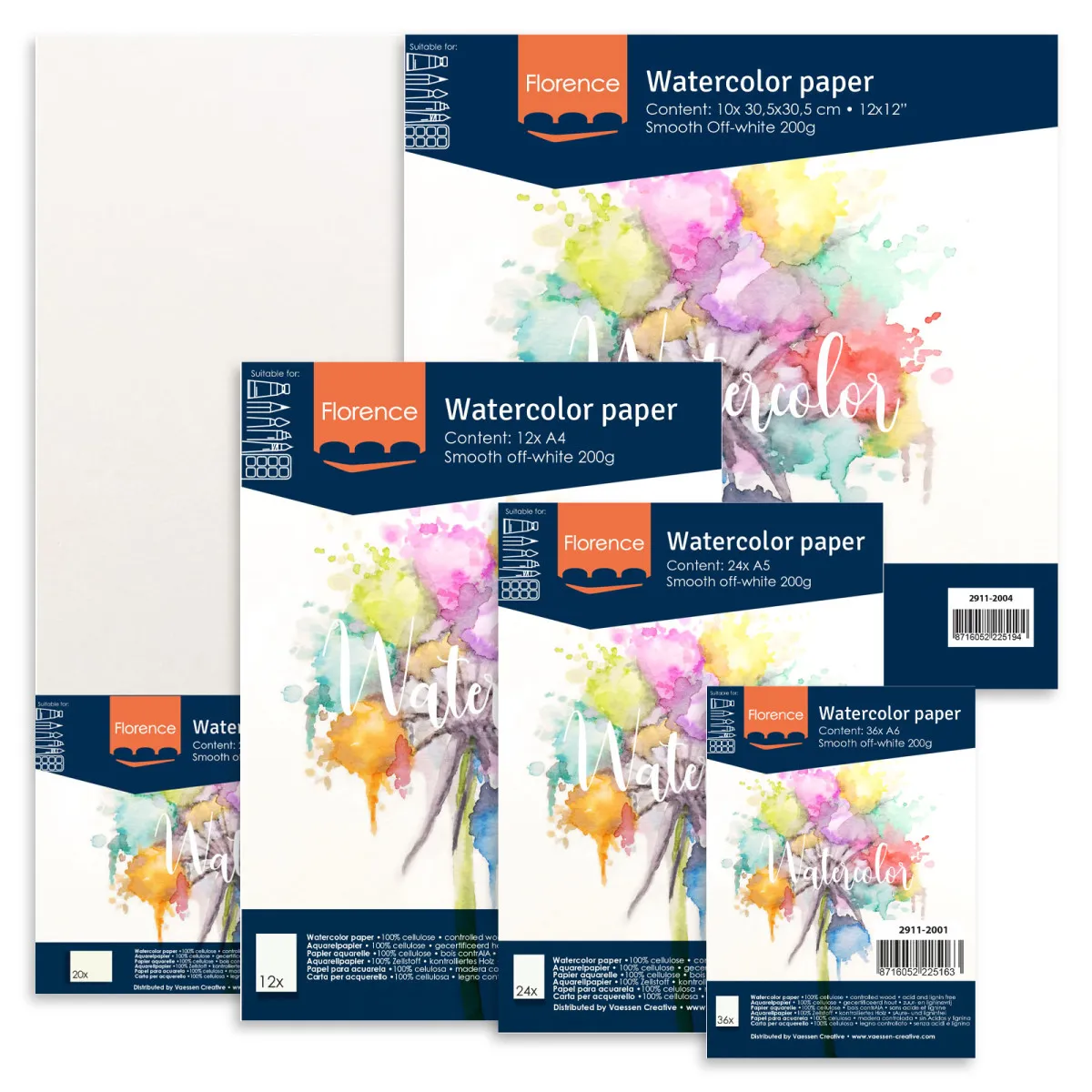 - Glattes, off-white Aquarellpapier 200 g/m² 29,7 x 21 cm