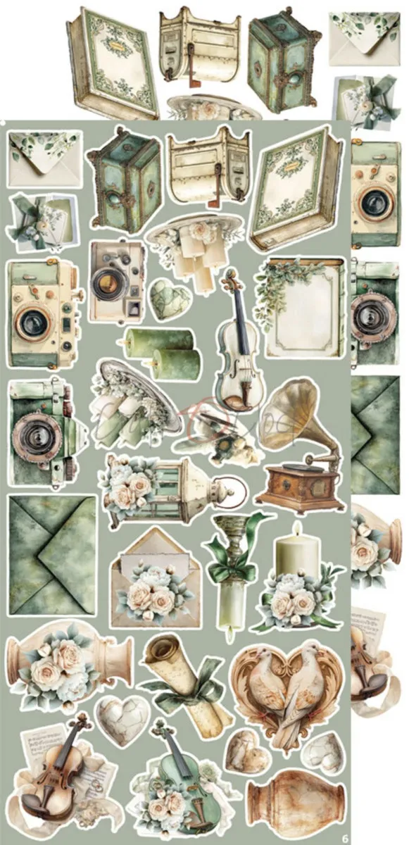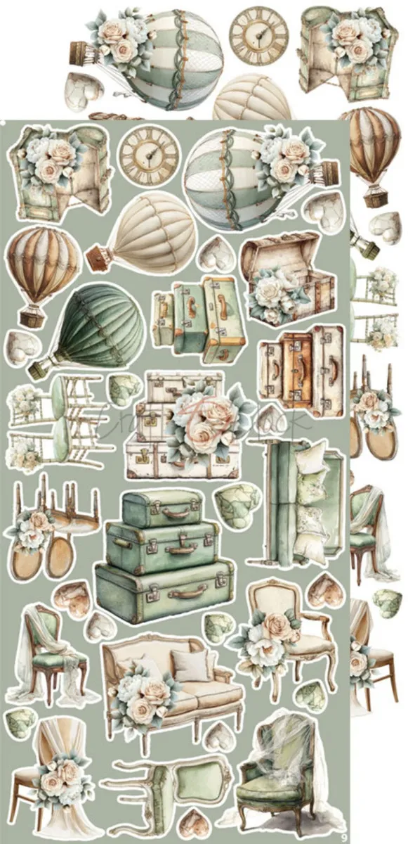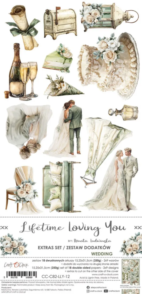 Ein Set aus 18 doppelseitig bedruckten Seiten aus hochwertigem Scrapbookingpapier mit zusätzlichen Motiven zum Ausschneiden (2 × 9 Designs) sowie 1 zusätzlicher Seite mit EXTRAS ZUM AUSSCHNEIDEN auf der Rückseite des Covers. Jede Seite hat ein Format von 15,3 × 31,5 cm. Das Papier hat eine Grammatur von 250 g/m². Dieses Produkt ist säure- und ligninfrei. Hergestellt in Polen.
