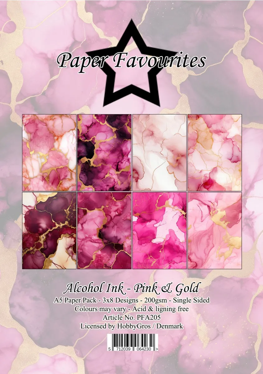 Paper Favourites - Alcohol Ink Pink & Gold - A5 Paper Pack