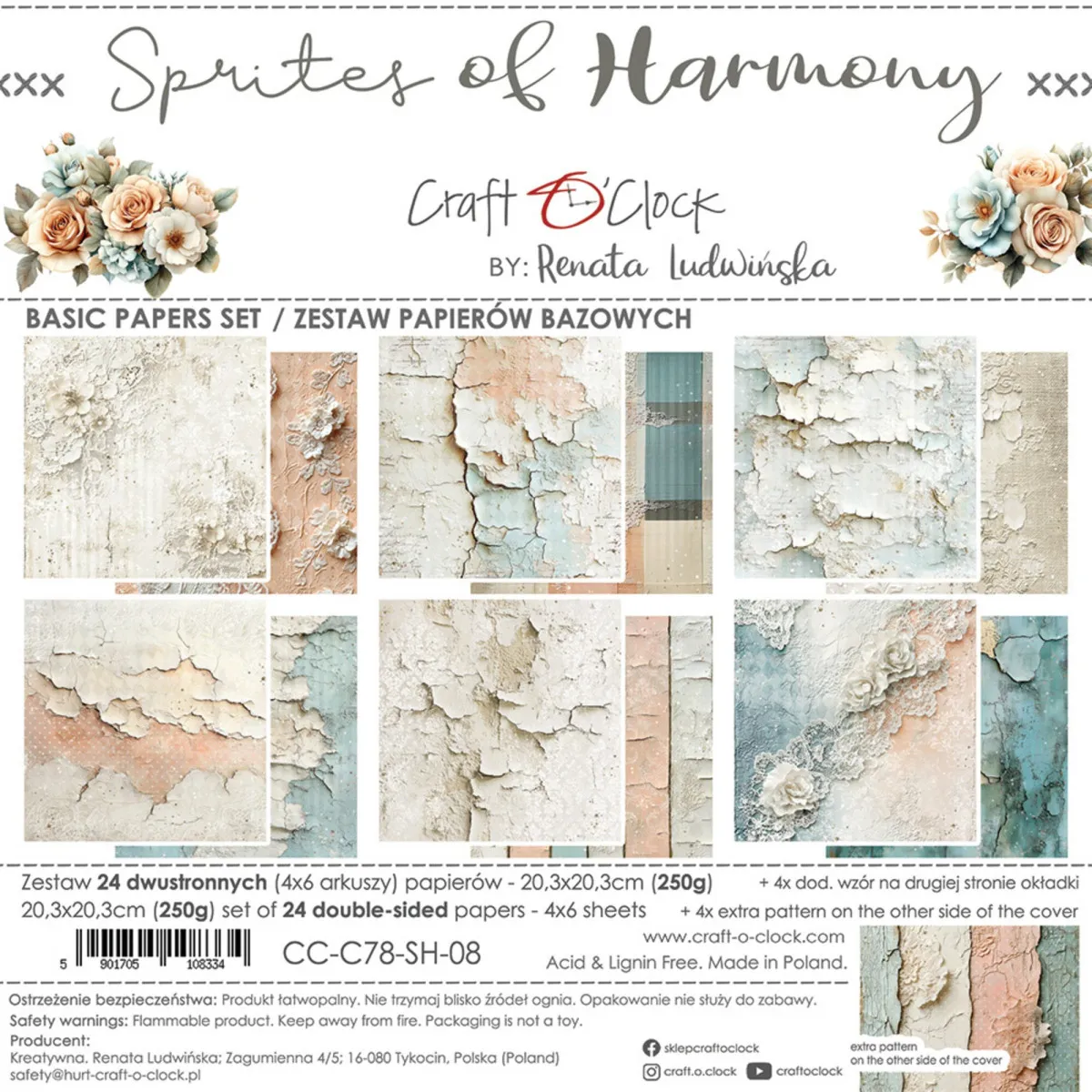 Ein Set mit 24 doppelseitigen Seiten hochwertigen Scrapbooking-Papiers. Jede Seite hat eine Größe von 20,3 x 20,3 cm (8x8 Inch). Das Set enthält 4x6 Muster, die mittlere Versionen der großen Papiere sind, plus 4x ein Extra-Muster auf der Rückseite eines Coverbogens. Das Papier hat ein Gewicht von 250 g/m². Dieses Produkt ist säure- und ligninfrei.
