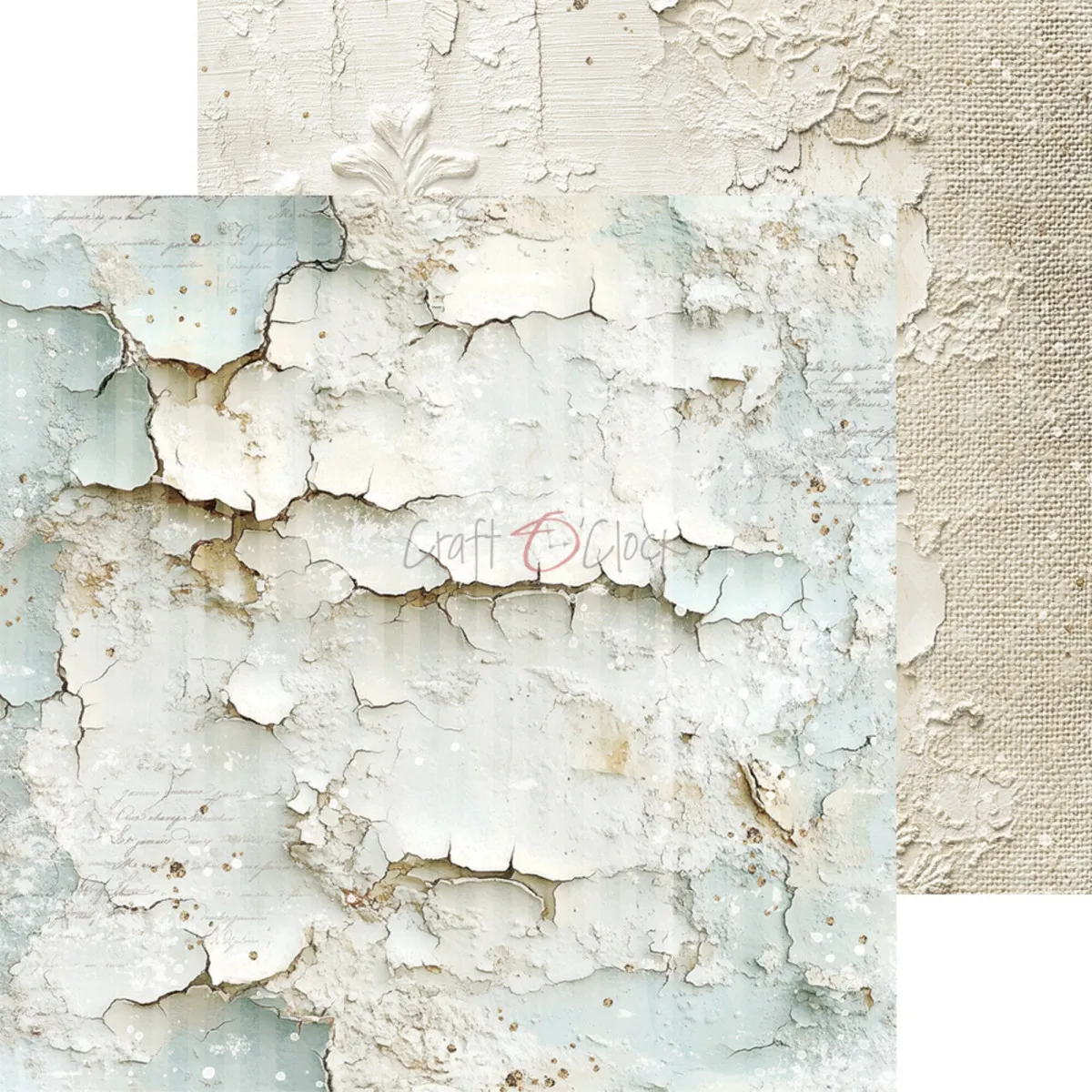 A6 Design Paper Nr. 35 - Weathered Wanderings - Snowfall & Stains