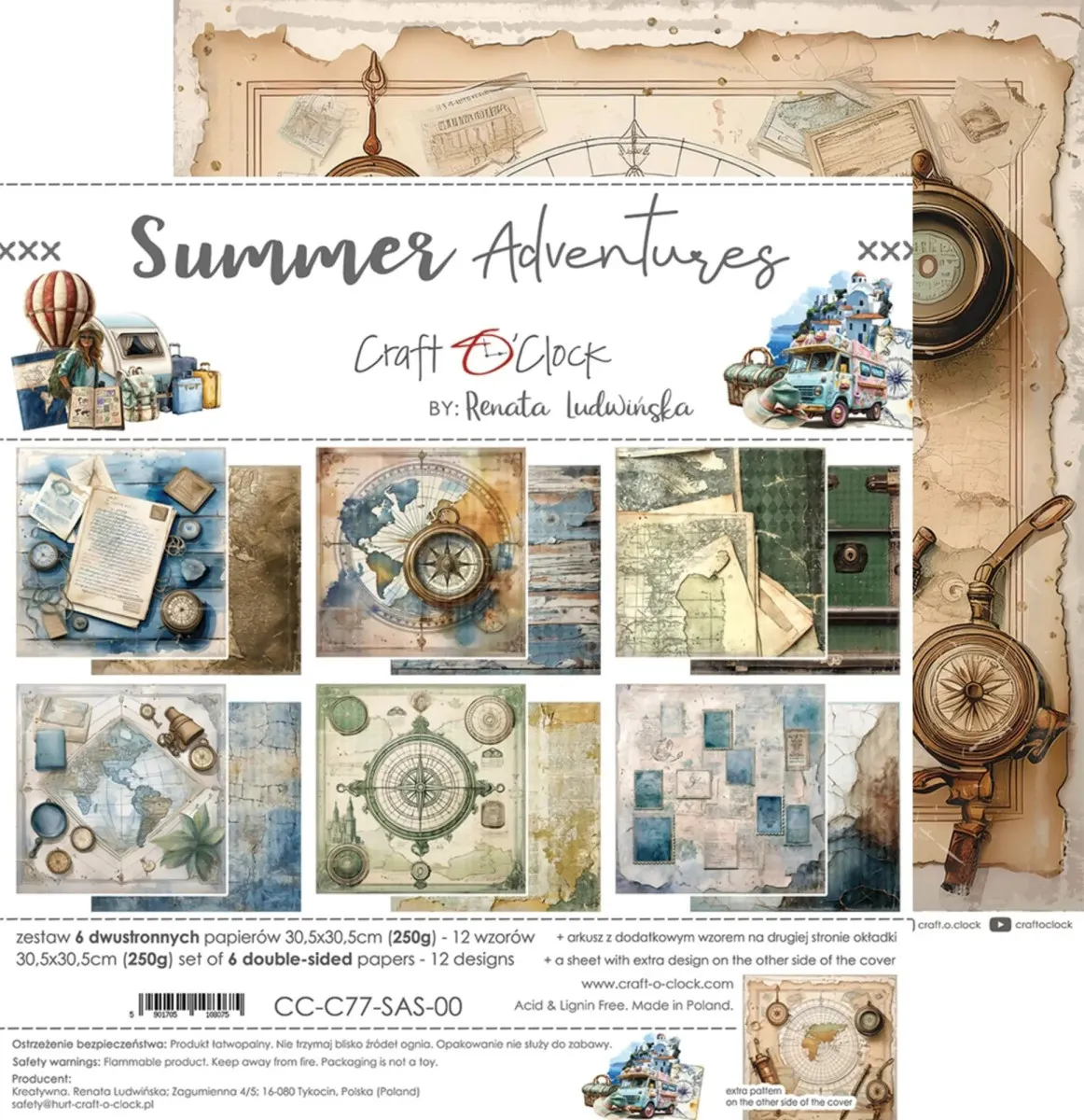 Ein Set aus 6 doppelseitigen Seiten (12 Muster) hochwertigem Scrapbooking-Papier. Jede Seite hat eine Größe von 30,5 x 30,5 cm (12 x 12 inches) plus einen Streifen mit dem Namen. Außerdem enthält jedes Set 1 Blatt mit einem EXTRA MUSTER auf der Rückseite des Covers. Das einzelne Blatt wiegt 250 g/m². Dieses Produkt ist säure- und ligninfrei. Hergestellt in Polen.
