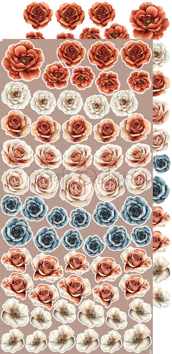 Ein Set aus 18 doppelseitigen Seiten hochwertigen Scrapbooking-Papiers mit zusätzlichen Elementen zum Ausschneiden (2x9 Designs) + 1 Bogen mit MOTIVEN ZUM AUSSCHNEIDEN auf der Rückseite des Covers.