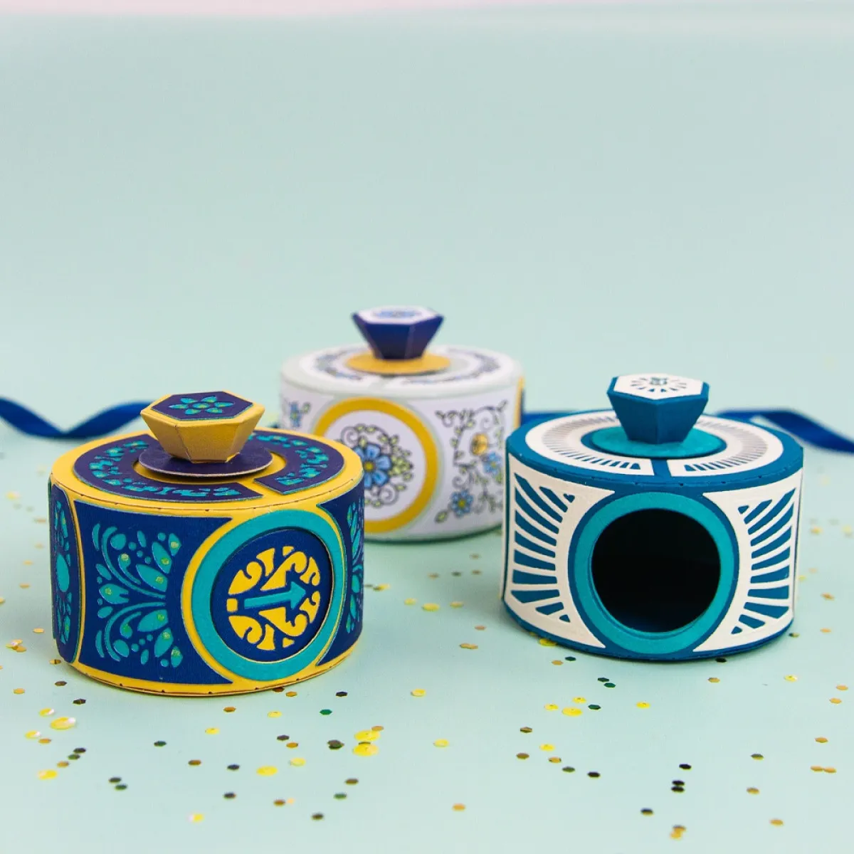 Eine elegant gestaltete Miniatur-Geschenkbox mit cleverem Öffnungsmechanismus! Drehe einfach den Knopf oben auf der Box, um die Öffnung freizulegen. Diese perfekt bemessene Box kann als Gastgeschenk oder zur Herstellung kleiner Leckerli- oder Geschenkboxen verwendet werden.