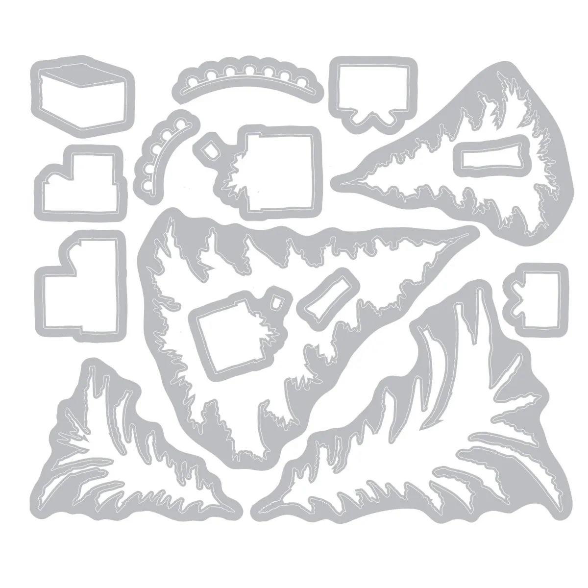 Das Set passt perfekt zum Sizzix Clear Stamps Set 8-teilig mit 2 Framelits – Journey Home von 49 and Market (667012). Die Stanzen lassen sich optimal mit der Sizzix Sidekick Maschine verwenden.