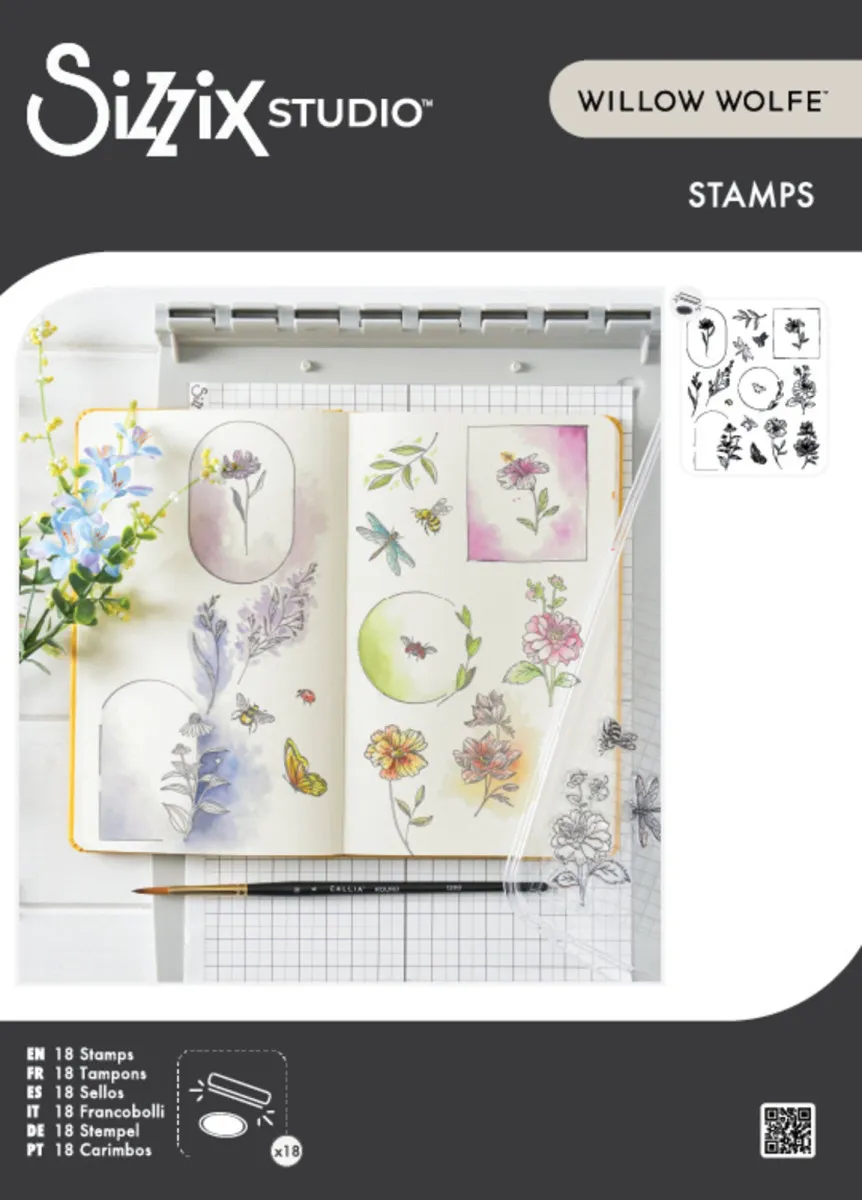 Das Sizzix Studio 5 × 8 Clear Stamp Set 18PK – Floral Frames and Mini Flowers von Willow Wolfe ist ein beeindruckendes Set mit 18 transparenten Stempeln, das speziell für die Verwendung mit dem Sizzix Registration Press Tool entwickelt wurde. Mit diesem Set kannst du elegante Rahmen, Blüten und Blattwerk präzise und mühelos zu deinen Projekten hinzufügen.