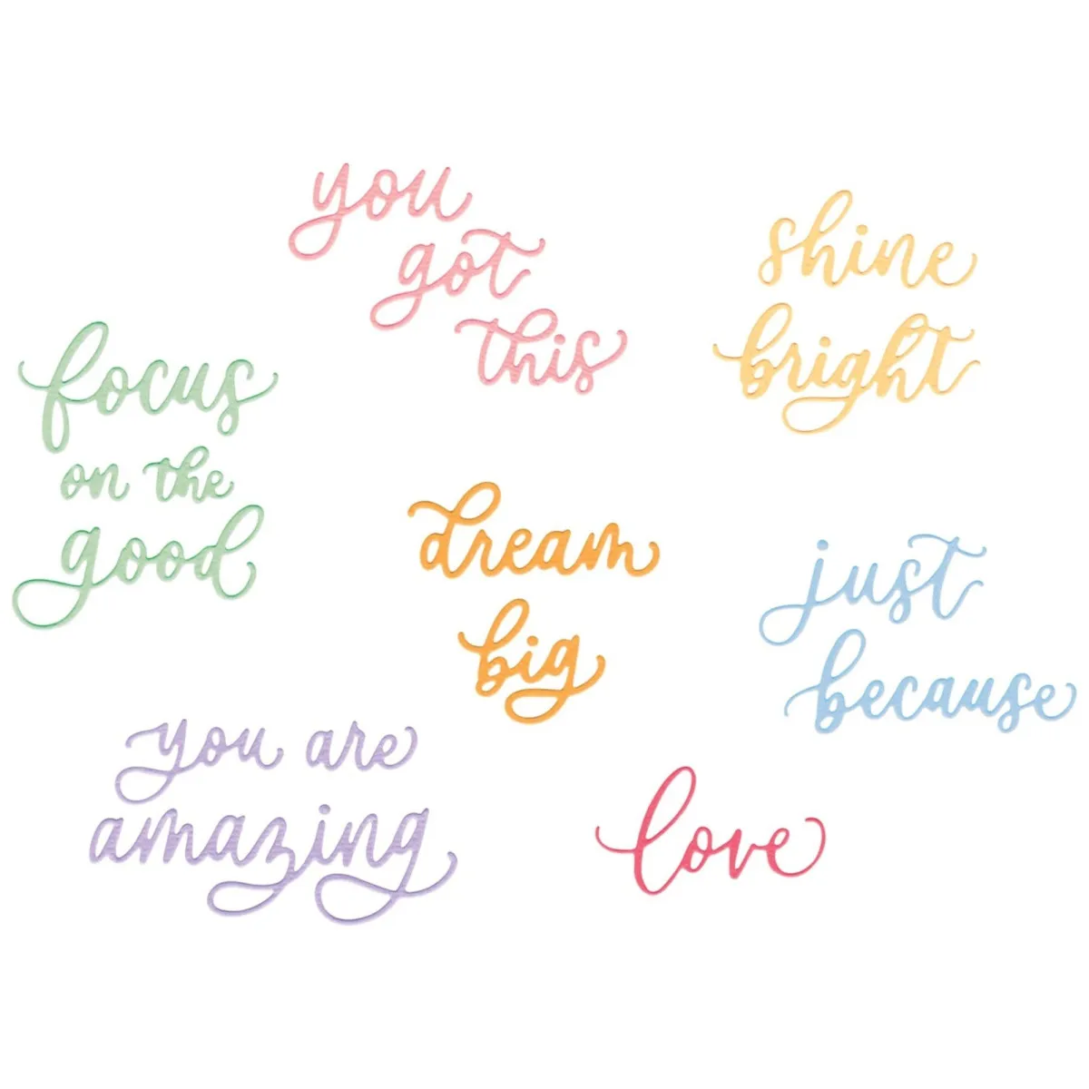Verbreite gute Laune mit dem Thinlits Stanzformen-Set 16PK – Fröhliche Sprüche von Letters by Shells! Dieses lebendige Set mit 16 Stanzformen enthält eine Auswahl an aufmunternden und lustigen Sprüchen, die jedes Projekt aufhellen. Diese fröhlichen Sprüche, darunter „focus on the good“ und „you got this“, sind perfekt, um positive Vibes zu verbreiten – egal, ob du Karten gestaltest, scrapst oder einer Geschenkverpackung eine besondere Botschaft hinzufügst. Lass deiner Kreativität freien Lauf und bring mit diesem Must-have-Stanzformenset Freude in jedes Bastelprojekt!