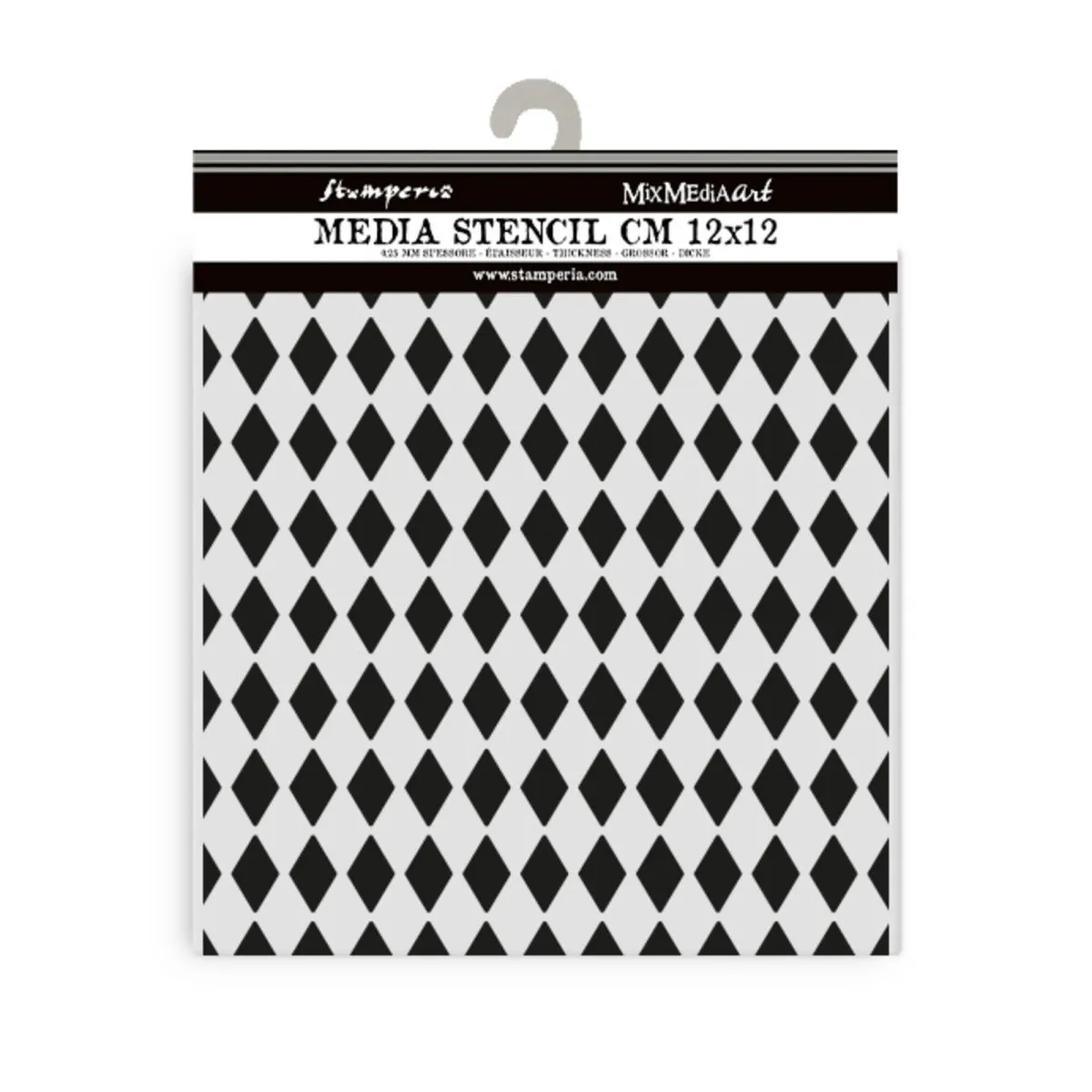 Mix Media Art Dicke Schablone. 12x12 cm, 0,25 mm dick. Flexibles und starkes Material. Ideal für 3D-Effekte, Spray- und Mix-Media-Techniken. Dicke Schablone aus widerstandsfähigem, transparentem und flexiblem Material. Es wird empfohlen, sie nach jedem Gebrauch zu waschen, bevor die Farbe trocknet. Eine Schablone speziell für Mixed-Media-Projekte zum Erstellen von 3D-Effekten oder zur Verwendung mit Sprühfarben.