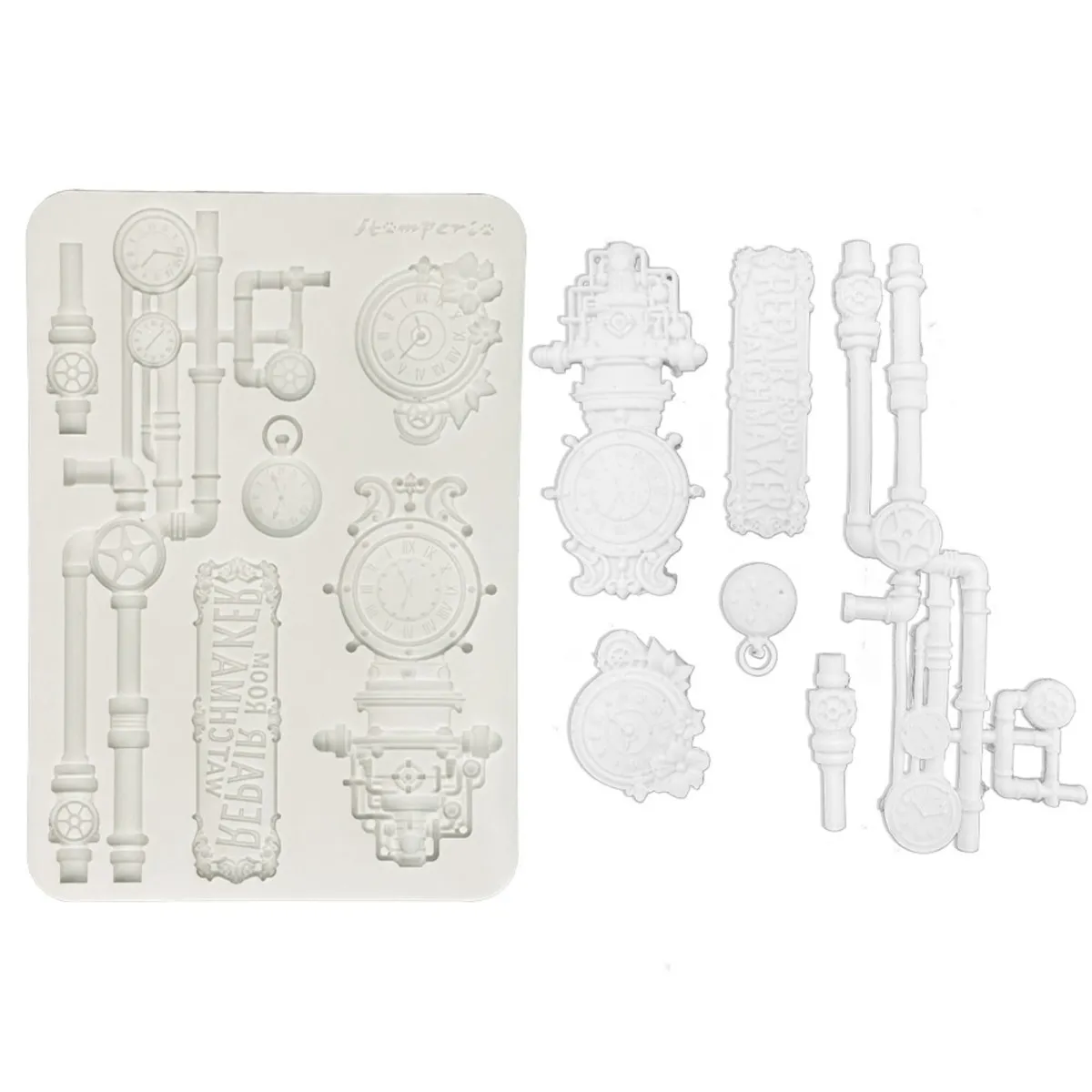 Diese Gießform aus Silikon kann mit Soft Clay, Modelliermasse oder Gießharz verwendet werden. Besonders praktisch ist die Verwendung von lufttrockenem Ton, um detailreiche Motive herzustellen.
