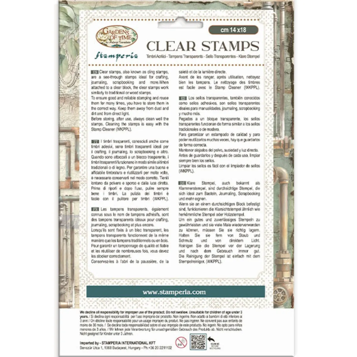 Modularer Stempel mit abnehmbaren Formen. Transparent und mit haftendem Acrylgummi, der auf den Acrylblock von Stamperia aufgeklebt werden kann. Langlebig und leicht zu reinigen. Perfekt für Scrapbooking-Dekorationen!