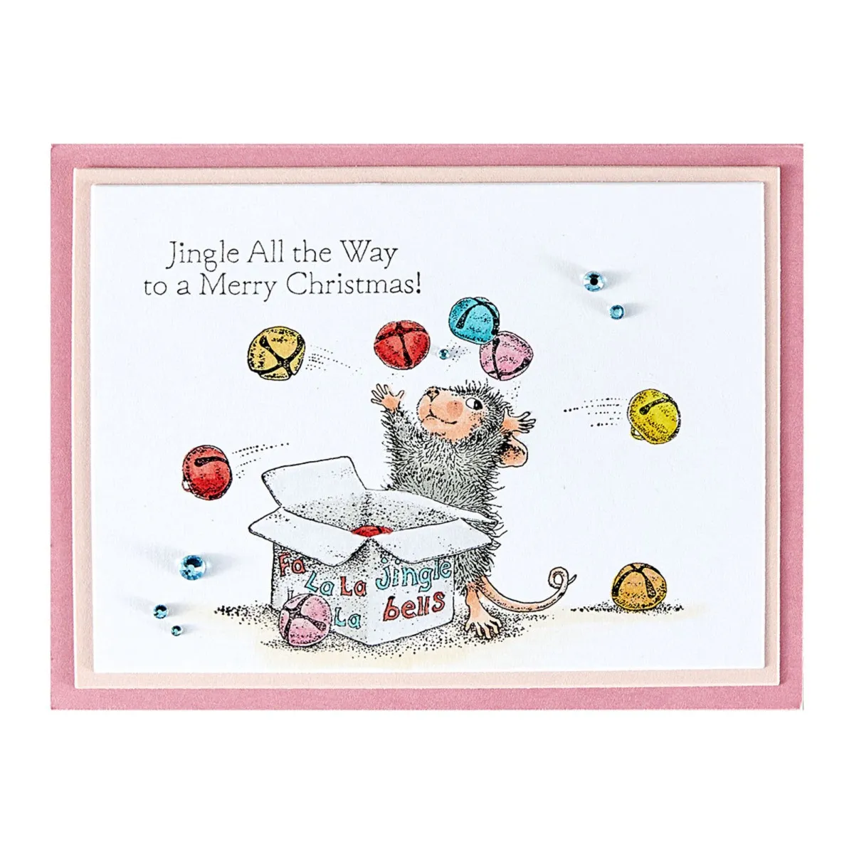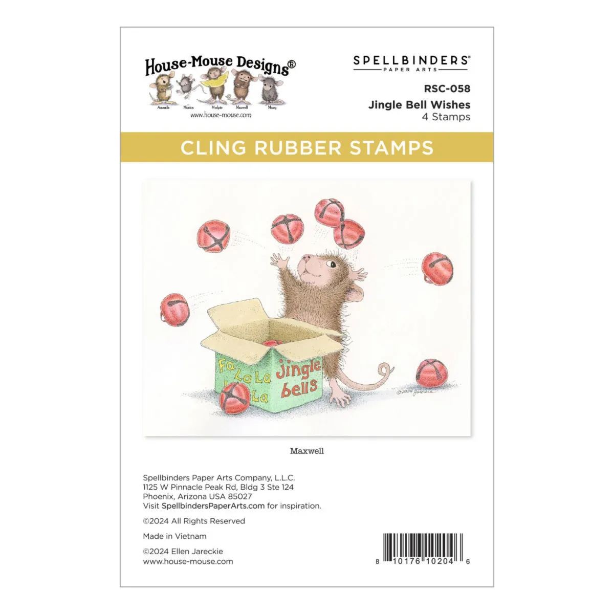 Das „Jingle Bell Wishes“ Cling-Gummistempel-Set stammt aus der House-Mouse Tree-mendous Christmas Kollektion. Maxwell bringt festliche Stimmung mit einer Schachtel voller Jingle Bells! Neben dem Hauptmotiv enthält das Set vier Stempel, darunter drei Sprüche: „Jingle All the Way to a Merry Christmas“, „Möge dein Feiertag mit Freude und Lachen erklingen!“ und „Ich sende dir Jingle Bell Wünsche und festliche Grüße!“ Die Stempel sind für die Verwendung mit einem Acryl-Stempelblock konzipiert. Die House-Mouse Designs® wurden von der talentierten Ellen Jareckie entworfen und urheberrechtlich geschützt. Es ist eine wunderbare Zusammenarbeit mit Spellbinders, und wir freuen uns, dir mit der Tree-mendous Christmas Kollektion eine warme und gemütliche Weihnachtsserie präsentieren zu können.